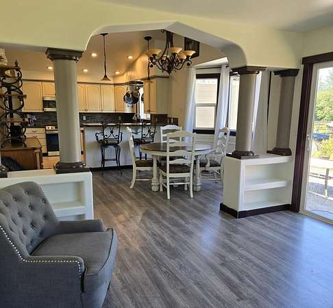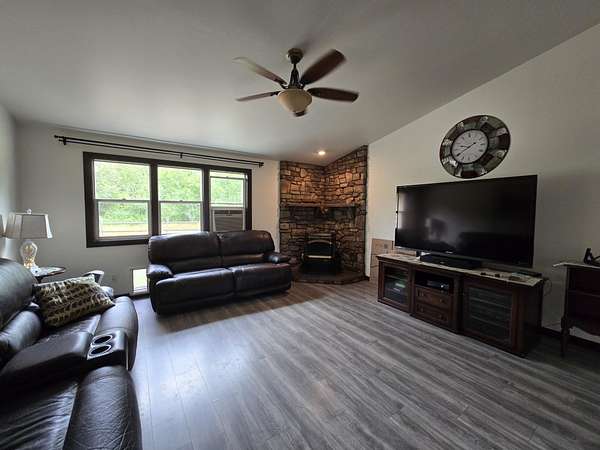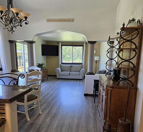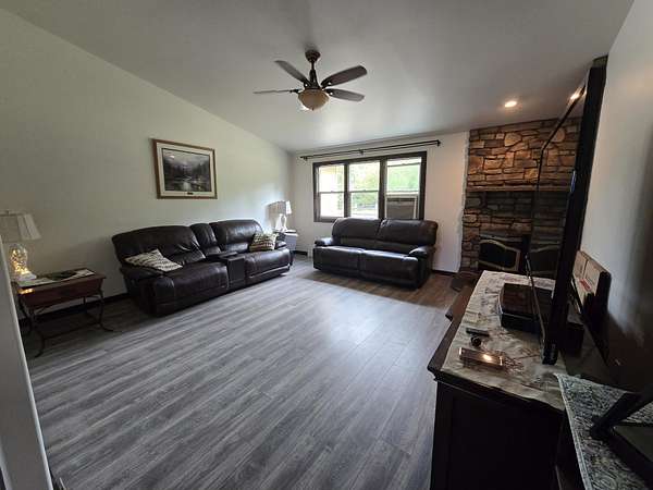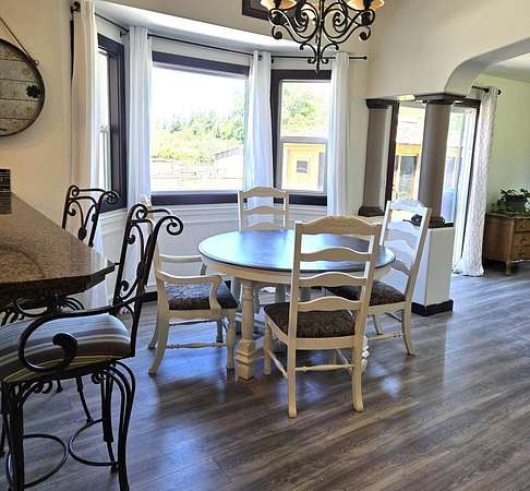 Discover the tranquility of a country living on this renovated 21-acre estate, blending modern comfort with rural elegance. The spacious home features a chef's kitchen, custom bathrooms, stylish flooring, 4 bedrooms, 2 bathrooms, multiple living areas. Practical amenities include a 3-car garage fully drywalled, new furnace. Outdoors, enjoy a gazebo with a new hot tub, a custom patio, propane hook-up for fireplace pit or BBQ, raised garden beds, manicured lawns, Equestrian & agricultural enthusiasts will appreciate the huge outbuilding with 3 stalls, hay storage and tack room, 3 additional storage bays, paddocks, fully fenced, 2 wells. Located just 3 miles from Stanwood, this estate offers rural serenity with easy access to amenities and subdivision potential, making it an exceptional opportunity for those seeking sophistication & functionality.