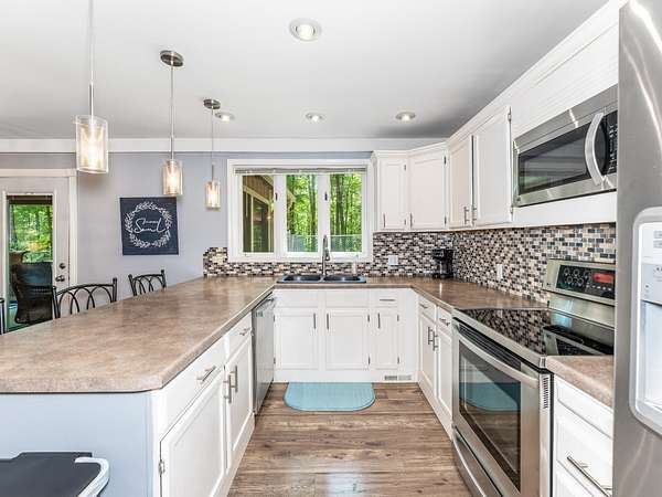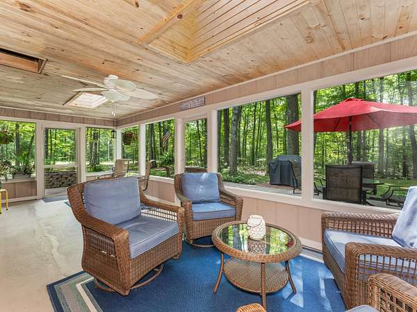 Upon Entry of the circle drive you'll feel your fairy tale begin to unfold. Placed on 5 luscious acres is your Better Homes & Gardens like home, pretty as a picture! Welcoming guests to your outdoor cookout is a paver patio with grill & seating. A weather change, step inside the 11 X 26 screened in porch, bugs & weather won't trouble you there! Step inside the Great Room where warmth and design welcome you! This home, over time has been completely remodeled! Beautiful counter tops and appliances create a kitchen ready to entertain. Large master bath main flr provides a place of luxury to soak away your cares while being entertained with your favorite movie. Large laundry rm with guest bedroom main floor. Now step into the cozy living area with gas stove for warmth. Upstairs welcomes guests with full bath, bdrm & Primary bdrm. 2 + car garage w/ new office space, Lg car port fits pontoon & speed boat plus a lg storage shed. Back of acreage roam the Bucks. Don't blink, it'll be gone!