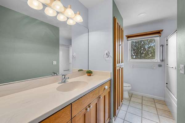 - Ceiling Fan(s), Double Vanity, Enclosed Toilet(s), Fiberglass Stall Shower, Linen Closet, Shower/Tub Combo, Stone Counters, Vaulted Ceiling(s)