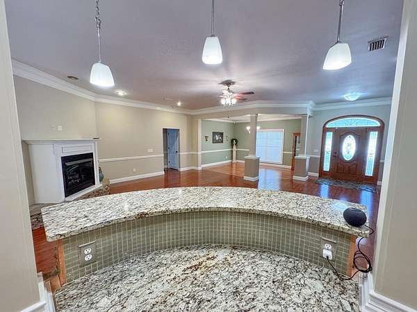 Amazing custom built home on nearly 3 acres. Home features an open concept living area, split bedroom plan offering 5 bedrooms and 3.5 bathrooms as it is, but has flex room for additional bedrooms, nursery, extra den area, game room, extra pantry space, storage, or whatever you need. Home offers a safe room, built-in gun/safe closet room, high-end commercial appliances, large crown molding, maple cabinets, granite in all bathrooms and kitchen, gas fireplace, 2 tankless water heaters, alarm and camera system, stone accent/ features and so much more. Outside you will find a large metal building; 35x35 enclosed, 20x50 lean-to on road side of shop, 16x50 on back side of shop, and 15x35 in front of shop, for all your hobbies and storage needs. This home offers so much versatility to suit all your needs. The area is known for it's wildlife, so sit in the comfort of your home and watch the wildlife or do a little hunting if you desire to so so. Location is an easy commute to Abbeville and Eufaula, and just 10 minutes to BEAUTIFUL LAKE EUFAULA.