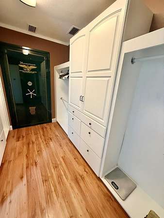 This gorgeous 5 bedroom, 3.5 bath home with a bonus room offers over 4,400 sq. ft. and sits on 3 beautiful acres. The open-concept design features gorgeous flooring and elegant crown molding throughout, creating a warm and inviting feel. The kitchen is a true culinary delight with maple cabinets, commercial-grade appliances, a gas stove, and granite countertops--perfect for entertaining or everyday living. Built with efficiency in mind, the home includes spray foam insulation and two gas tankless water heaters. For added peace of mind, the property also features a solid concrete safe room and a dedicated gun room. Outside, you'll find an impressive 35x35 powered workshop complete with a private office and half bath, making it ideal for projects, storage, or business use. Enjoy peaceful country living with abundant wildlife, all just 6 minutes from Thomas Mill on Lake Eufaula.
