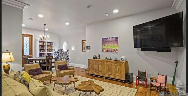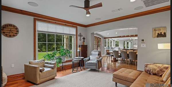 A Rare Opportunity on the Golden Mile of Highland Road! Formally known as "The Saban Estate", this home is nestled atop one of Baton Rouge's most prestigious ridges. This exceptional 20-acre estate (14.05 acres sold separately) combines timeless French Chateau elegance with unmatched modern amenities. Thoughtfully designed for both refined living and grand entertaining, the main residence offers views of Highland bluff from the expansive sunroom, kitchen, and primary suite. The main home features exquisite architectural detailing throughout, including limestone and iron staircase, wood flooring, intricate crown molding, and Control 4 system. The chef's kitchen boasts a 9'x10' 4cm quartzite island, triple sink, Miele 6-burner cooktop, and full suite of premium appliances. A charming guest house, complete with full kitchen and private parking, offers a true storybook experience for visitors or extended family. The carriage house includes a 2nd floor gameroom, full bath, and could serve as a studio/home office. Exceptional outdoor amenities include a covered entertaining pavilion, and full-service caterer's kitchen/laundry with Sub-Zero fridge/freezer, ice maker, and half bath. The lighted sports court, resort-style pool, and LSU-designed landscaping by Dr. Riche enhance the estate's elegance and functionality. Additional features: whole house generator, sunroom, workout room, outdoor and indoor laundry spaces, multiple washers/dryers, two gated entrances for separate access to the main home, guest quarters and the back 14 acres (sold separately), 3-car heated/cooled garage that has a 2nd floor office/bedroom, cedar closet, and bath. An unparalleled estate in the heart of the city, offering both privacy and proximity with two entrances off Highland Road and one off Burbank Dr. An additional 14.05 acres is also available (sold separately once front is sold), featuring gated access to Burbank, pond, and gazebo, perfect for future expansion or investment. See attachments.
