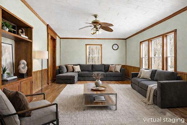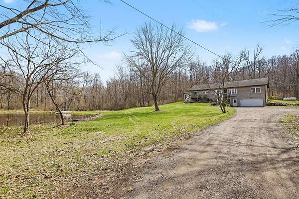 Welcome home to your private retreat on 15 beautifully wooded acres in Alamo Township! This secluded property features a spacious ranch home with 1,900+ sqft, 2 beds & 1 bath, offering comfortable main-level living surrounded by nature. Enjoy peaceful views & 1000' of private pond frontage--perfect for relaxing, fishing, or watching wildlife. A large pole barn with concrete floors provides excellent storage, workshop space, or hobby use. Additional highlights include a 2-car garage, generator, propane heat, central air, & private drive access. Tucked away for privacy yet offering convenient access to US-131, Kalamazoo, Plainwell, & an easy commute toward Grand Rapids, this property delivers the best of both worlds. If you've been searching for acreage, water, & outbuildings - this is it!