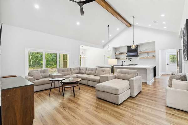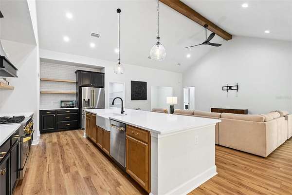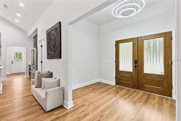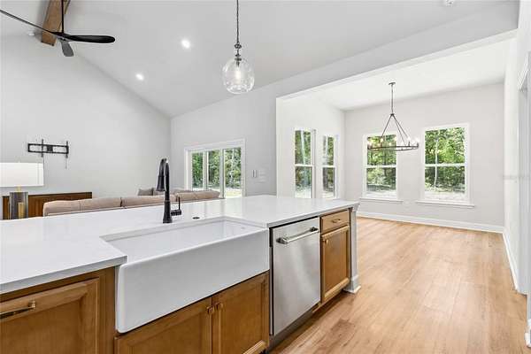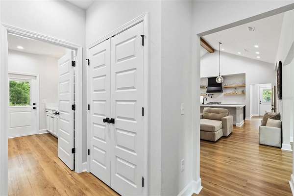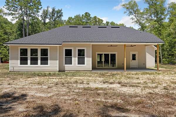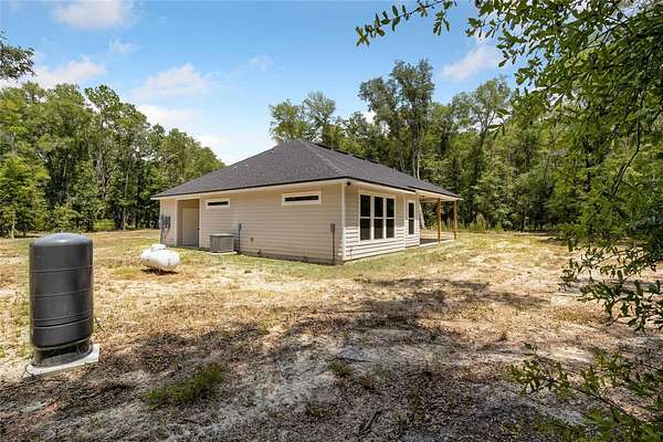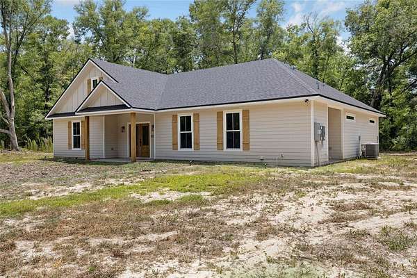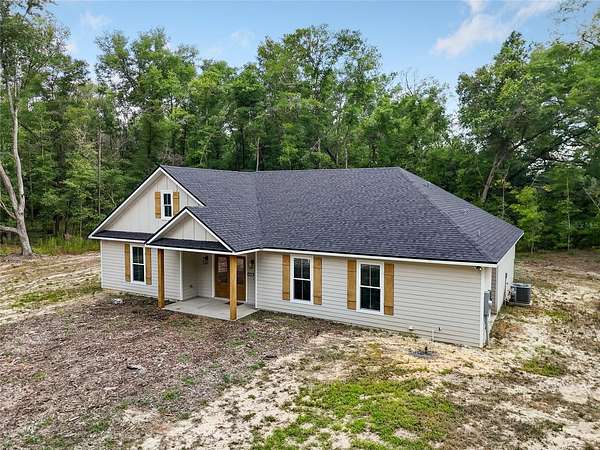 Under contract-accepting backup offers. Priced to sell with motivated sellers and instant equity opportunity! This 2023 custom-built modern farmhouse offers 2,011 sq ft of luxury living on 8 peaceful, partially wooded acres in Alachua, Florida. Designed for both style and function, the home features vaulted ceilings with exposed wood beams, luxury vinyl plank flooring throughout, recessed lighting, and a spacious open-concept layout perfect for entertaining. The gourmet kitchen is a showstopper with top-of-the-line ZLine appliances with gold hardware, a 12-foot quartz island, pot filler, custom backsplash extending to the ceiling, floating shelves, and a large walk-in pantry. The primary suite offers a spa-like retreat with oversized windows, dual rainfall walk-in shower, freestanding soaking tub, and floating double vanity. Enjoy morning coffee or sunset views from the expansive covered back porch overlooking the serene landscape and abundant wildlife. Thoughtfully planned for future expansion, the home is designed for easy addition of a garage via breezeway or even a pool--ask how construction can be rolled into your loan! Outdoors, the possibilities are endless--bring your animals, equipment, or garden plans. A tractor and storage container can be negotiated with the sale, offering a turnkey setup for anyone looking to start or maintain a farm or homestead. Just minutes from Alachua and Gainesville amenities, this property combines modern elegance with rural freedom. Don't miss your chance to own this rare and stunning retreat--schedule your showing today!
