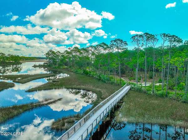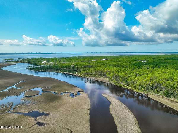 PRICE CHANGE!! Come build your dream home on a premier lot in RiverCamps. This beautiful lot backs up to water views of Crooked Creek and is one of the deepest lots in the community giving you an abundance of privacy. Mature oak trees dot the landscape and is within easy walking distance to a soon to be renovated pool and amenities. Lot includes home plans and topographical survey, and lot survey.Rivercamps Crooked Creek offers gated access into the community. Amenities include boat storage, boat dock, boat launch, washout areas, public washrooms, walking trails, campfire/glamping tents. Come be a part of Panama City Beaches fasting growing area that is conveniently, a new hospital, beaches and Pier Park.