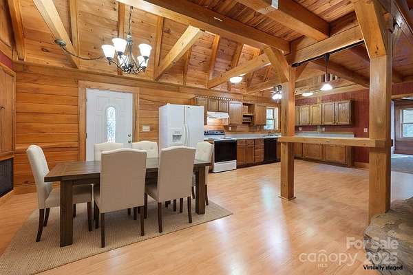 Rare Log House Retreat | Market-Driven Offer Event |Starting Bid $600,000 This is your special opportunity to own a true log house retreat on two peaceful acres set in a tranquil community in Clover. Experience a private mountain lodge - without the long drive - this authentic cypress log retreat delivers craftsmanship, comfort, and character in a setting designed to slow life down and bring people together. A true log home, custom built from 100-year cypress logs (not siding or veneer), professionally treated for exceptional durability, longevity, and low maintenance - offering rare peace of mind and a level of craftsmanship that is increasingly difficult to replicate. Set at the end of a long paved drive on private acreage, the home spans three expansive levels (each approximately 30' x 60') and is rich with exposed beams, warm wood textures, and timeless lodge character throughout. The main living level flows effortlessly from the kitchen into an inviting living space anchored by a pellet stove, creating a natural gathering point for everyday living and special occasions alike. Flexible spaces accommodate work-from-home needs, hobbies, or guests, while thoughtfully designed bedrooms and baths provide comfort and privacy. Upstairs, loft-style bedrooms connected by a charming interior bridge create a memorable retreat that feels straight out of a storybook. Beyond the traditional "on-paper" square footage, the home offers substantial additional space under roof, providing exceptional functionality, storage, and versatility that buyers will truly appreciate once they see it in person. The lower level is designed for both fun and function, featuring a two-car garage, laundry area, a wood-burning furnace integrated into the central system, and a custom bar ideal for game days and gatherings. Energy efficiency is a standout feature. Heavy log construction combined with R-110 roof insulation keeps the home impressively warm in winter, comfortably cool in summer, and efficient year-round - resulting in a cozy interior and lower utility costs. Outdoor living is where this home truly shines. A massive full-length front porch overlooks a recreation-ready front yard with a horseshoe court and stone wood-burning grill/cookstove - the perfect setting for entertaining, relaxing, and enjoying frequent wildlife visits, including deer that often gather near the firepit. A private rear porch, additional deck space, and natural surroundings complete the experience. The detached shop/garage is a rare bonus, featuring two separate work bays, a vehicle hoist, built-in air compressor, and the ability to connect a wood stove or furnace - ideal for car enthusiasts, craftsmen, or serious hobbyists. Additional storage buildings, ample parking, and a driveway camera/sensor system provide convenience, security, and peace of mind. This is not a mass-produced home - it is a thoughtfully designed, owner-built retreat offering authenticity, efficiency, flexibility, and lifestyle. Whether envisioned as a full-time residence, private escape, or distinctive investment opportunity (buyer to verify), homes with this level of character and craftsmanship are truly rare.