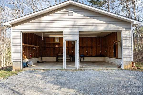 Tucked away in a peaceful, private setting with beautiful mountain views, this move-in ready home offers the perfect balance of comfort and functionality. The split-bedroom floor plan features 3 bedrooms and a spacious primary suite with an ensuite bath. The family room offers a cozy fireplace, creating a warm and inviting space to relax or entertain. Outside, you'll find a large 28x24 workshop equipped with multiple electrical outlets, including a 240V outlet, plus two oversized garage doors—ideal for hobbies, equipment, or serious workspace needs. A separate 10x16 storage shed provides even more room for tools and outdoor gear. Perfect for buyers seeking privacy, usable land, and exceptional storage and workshop space while still enjoying the beauty of Western North Carolina