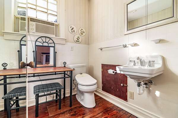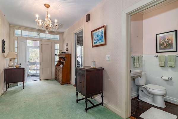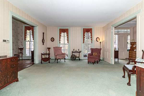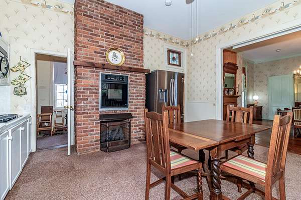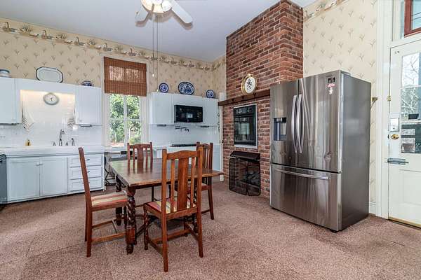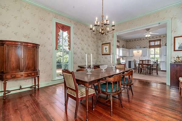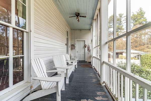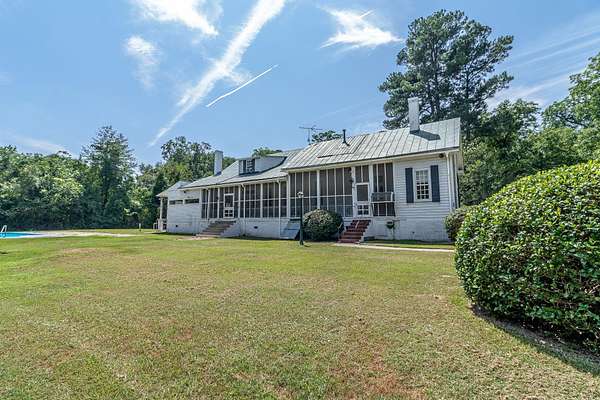 You will take a step back in time when you view this Historic Plantation home, The Rose Cottage, built in 1843, nestled on 13 acres with a spring fed stocked pond and a peaceful creek that flows through the back of the land. This gorgeous home features 4 bedrooms with the owner's suite down, 3 and 1/2 bathrooms with 2 additional outdoor half baths. Original heart-of-pine wood floors, breathtaking floor to ceiling windows and custom wood work are a must to see! 12 ft. ceilings with solid wood doors opening into a formal living and dining area. Fireplaces in the kitchen, formal living room, dining room, den and owner suite make this home even more inviting. This oversized kitchen features tile countertops, gas range, built in microwave, large pantry, custom corner built-in shelves, wood burning stove and a brick fireplace with beautiful wood mantle. Plenty of storage, closets and a walk-up floored attic with lots of space. Stunning front and back porches with ample room for entertaining and beautiful wooden swings. The backyard includes a detached double carport, greenhouse and a swimming pool.