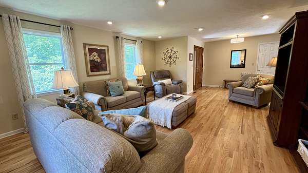 Just one mile from downtown Lewisburg, WV, this spacious brick ranch home offers 4 bedrooms, 4.5 baths, and 5.58 +/- acres of gently rolling land. A mix of open lawn and wooded areas provides both space and privacy, while a seasonal creek adds natural charm. Inside, you'll find multiple living areas, two home offices, and flexible spaces that fit the way you live...ideal for remote work, entertaining, or multi-generational living. With its blend of acreage, convenience, and comfort, this Lewisburg WV property for sale is perfectly located near WVSOM, entertainment, and restaurants in the Greenbrier Valley. The main level gives you options: a bright front living room, a cozy family room with a fireplace, and a kitchen that ties it all together. The wide peninsula adds prep space and casual seating, while the dining room gives you a place to gather when the moment calls for it. All four bedrooms are on the main level including two full suites...ideal for hosting guests, multigenerational living, or carving out a little extra space. Two dedicated offices provide flexibility for remote work, creative projects, or quiet focus. Downstairs, a finished bonus area with its own full bath adds even more versatility. Whether you need a playroom, gym, or tucked-away media room. It connects directly to the garage, creating a convenient entry point for everyday life. Outside, the yard is set up for all kinds of days. The back deck overlooks the acreage, part of which is fenced for pets or play. There's a seasonal creek, paved sports pad, and a treehouse nestled in the trees...just enough adventure without leaving home. And when you're ready to head into town, downtown Lewisburg and WVSOM are just a mile away. So you don't have to choose between privacy and proximity...you get both. Property type Residential Year: 1977 Bedrooms: 4 Bathroom: 4.5 Total SqFt: 3,567 Main Level Finished: 2,947 Lower Level Finished: 620 Information deemed reliable but not guaranteed. Location 633 Judyville Rd Lewisburg, West Virginia 24901 Property coordinates: 37.7994, -80.42638 Elevation: 2,152 feet Parcel info: District: 10 (Lewisburg Corp) Map: 26 Parcel: 16 3-10-0026-0016000 5.58 +/- acres Deed Book/Page: 479 / 918 Deeded Easement (Deed Book 648, Page 771) allows access to the rear of the property through an adjacent parcel. Conveying Items: Oven/Range, Refrigerator, Dishwasher, Mobile Signal Booster, Treehouse Schools Lewisburg Elementary School Greenbrier Community School Eastern Greenbrier Junior High School Greenbrier East High School