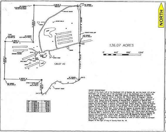 Est $3,375/mo136-acre property featuring approximately 88 acres of pasture and 45 acres of wooded land, along with multiple ponds. A 2,711 square foot home with 4 bedrooms and 3 bathrooms is also located on site and includes a vaulted-ceiling great room with a wood-burning fireplace. Improvements on the property include a 2-bedroom, 1-bath tenant house, several barns, sheds, and eight older breeder houses. The property is being sold as-is.