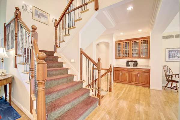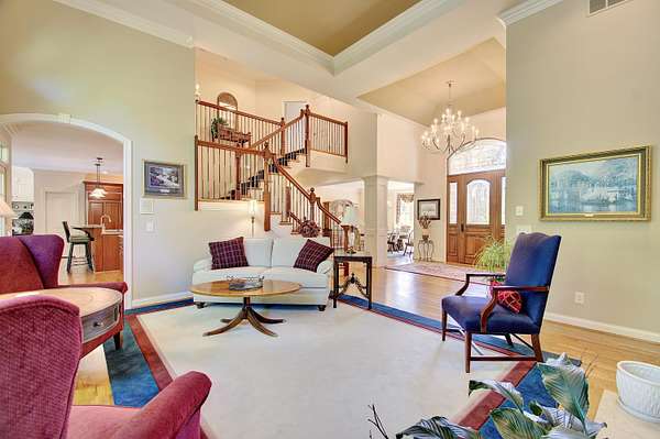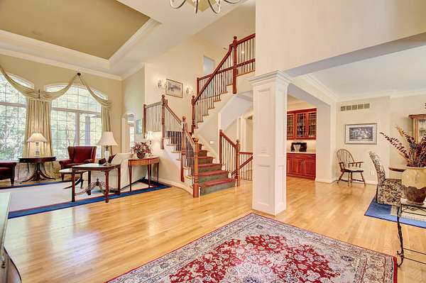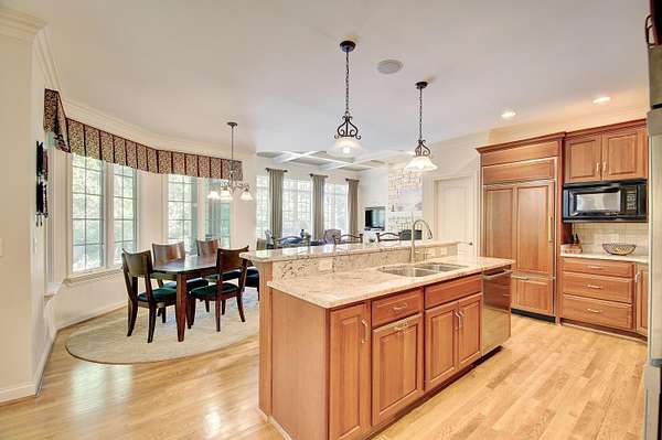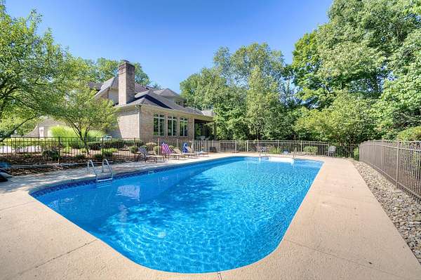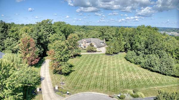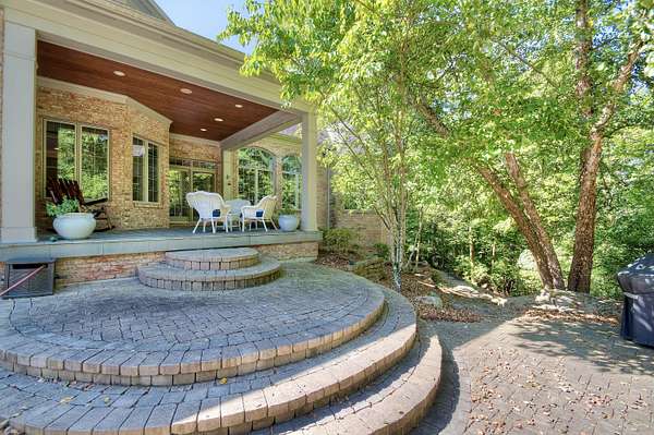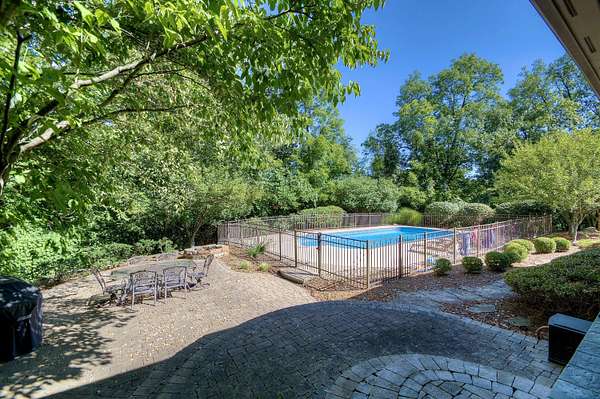 Beautiful 7,500+/ sqft custom home nestled at the end of a private wooded cul-de-sac on a double lot. Perfect floor plan for entertaining. Dining room seats up to 20 guests. Loads of custom features. 9'-14' ceilings, Fluted cased door frames, arched door openings, hardwood throughout the first floor. Butlers pantry, wet bar between the formal living room and kitchen. The rear of the home has walls of windows overlooking the wooded yard. The chefs kitchen is open to the oversized family room and boasts a stone fireplace, coffered ceilings and built in cabinets. First floor primary suite has dual WIC, and large spa like bathroom. The incredible study is next to the primary with 14' coffered ceilings and loads of built in book cases. The second floor is expansive with three oversized bedrooms (all have access to a full bath). The lower level has 9' ceilings, a bar with a refrigerator, dishwasher, icemaker and microwave. Adjacent to the wine room. It is a huge room with loads of natural light. It also has a workout room, full bath and changing room that accesses the beautiful built in pool. The pool deck has a firepit and is adjacent to the covered porch. The unfinished portion ( approximately 1000 sqft) is perfect for a hobby. There is an additional stairway from the unfinished basement to the garage.