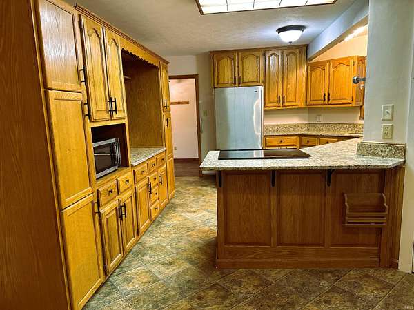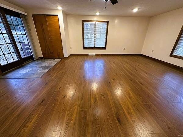 Price improvement! - Come take a look at this 4 bedroom, 2.5 bath ranch located in town on a large lot and just minutes away from Naval Weapons Station Crane and the WestGate Crane Technology Park. This property offers the convenience of small town living with plenty of space for hobbies and outdoor activities. Originally a 3 bedroom home, a thoughtfully designed addition expanded the living space to approximately 1,900 square feet, adding a spacious bedroom, a full bath and a dedicated laundry room. This bedroom can also serve as a second family room, den, or office, allowing the layout to adapt to your needs. Custom handcrafted oak window sills, door trim, and baseboards add warmth and character. All walls are freshly painted, making this home truly move in ready. A long list of updates enhances both comfort and efficiency, including newer windows (2017), a replaced septic system (2023), updated water heater (2021), sump pump (2022), and granite kitchen countertops (2025). Major mechanical components have also been improved over time, with a furnace installed in 2011, an air conditioning unit added in 2013, and a newer dishwasher (2021). A brand-new roof in 2025 adds even more peace of mind, making this home exceptionally well-maintained and move-in ready. Outside the property shines with a 30 x 56 pole barn, a large vinyl shed, and a heated and cooled workshop with gas heat, A/C, and its own 200 amp service. Its ideal for hobbies, small business use, or serious storage. The workshop and home are served by a single electric meter with underground conduit in place for additional utilities.