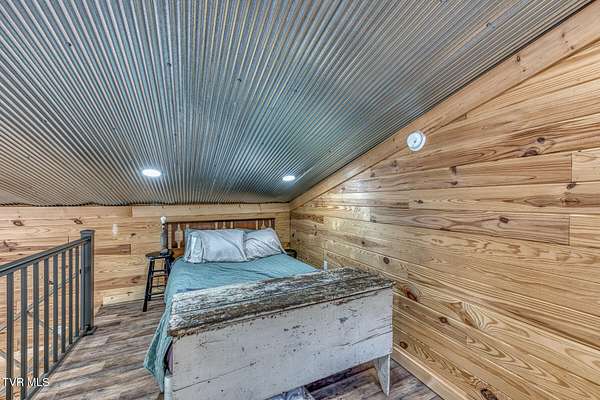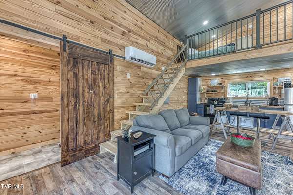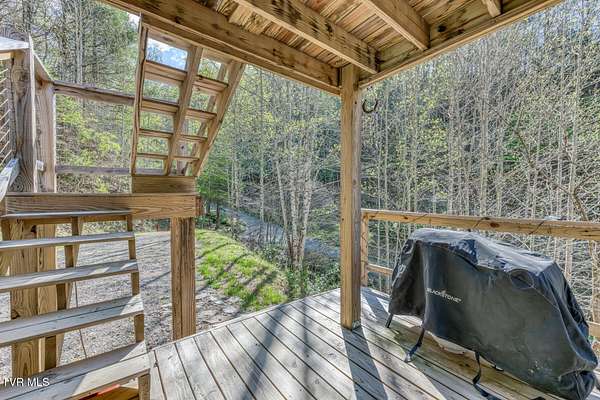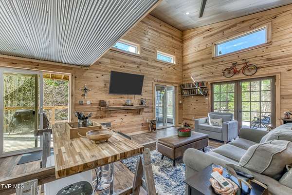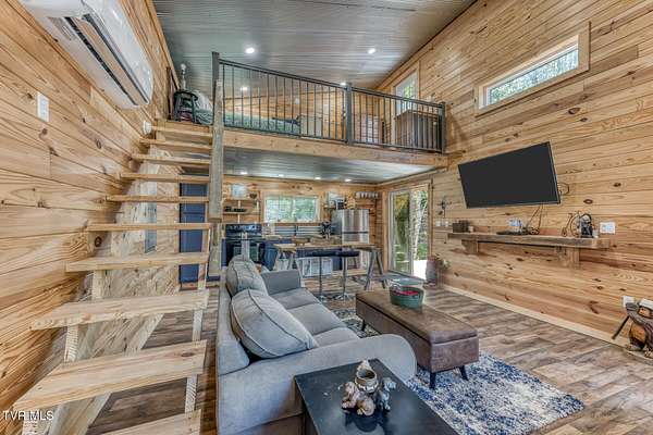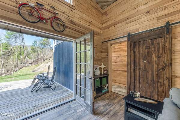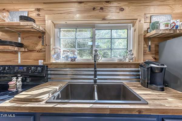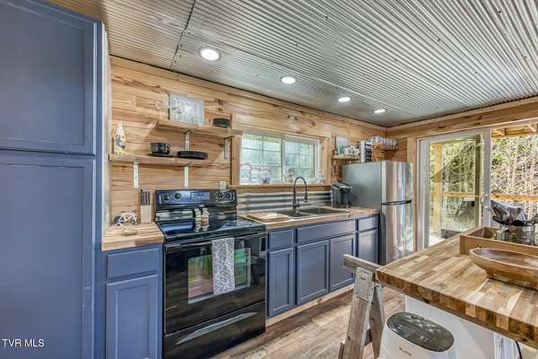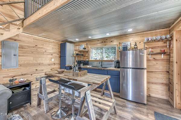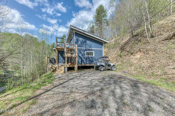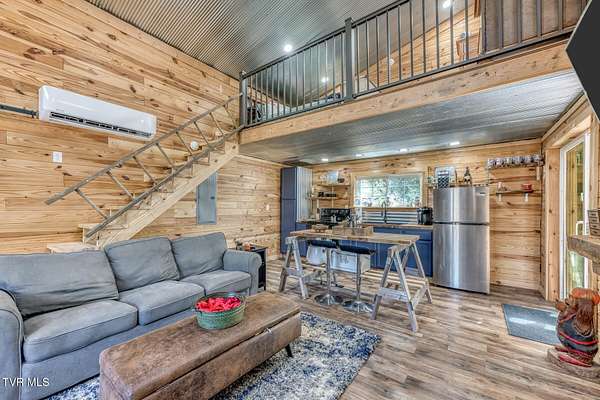 CASH PURCHASE ONLY! Welcome to your private mountain escape--perfect as a full-time residence, vacation getaway, or hunting retreat--nestled on approximately 8.83 acres of unrestricted land along a quiet gravel road in the scenic Appalachian Mountains of East Tennessee. If privacy, peace, and tranquility are what you're after, this property delivers. Surrounded by nature and accompanied by the soothing sounds of a babbling creek, you'll have ample space to explore, hunt, or even expand. Inside, the home features an open-concept kitchen and living area with modern rustic design touches. Highlights include a loft bedroom with both interior and exterior access, complete with its own private balcony, a flexible bonus space ideal for a guest area, reading nook, office, or craft room--also with a private entrance. The full bathroom doubles as a laundry room and includes exterior access, making it perfect for use as a mudroom. The living room opens through French doors onto a spacious back deck, offering peaceful views of the surrounding mountain landscape. Design elements throughout the home include recessed lighting, corrugated galvanized metal accents (featured in the kitchen backsplash, ceiling, and bathroom), contemporary windows as skylights, butcher block countertops and shelving, hand-hewn bookshelves, natural wood walls, a barn door, sliding glass doors, and a mini-split system. Appliances include a range, stainless steel refrigerator, and stackable washer and dryer. With five separate outdoor access points, the home seamlessly blends indoor and outdoor living. Enjoy expansive covered porches with rustic industrial wire detailing, along with a large deck perfect for relaxing or entertaining. Wildlife is abundant, and you'll regularly hear the sounds of birds, the creek, and nature all around you. The property offers two access routes from the private road: a gravel driveway and a secondary grass-covered path leading directly to the back deck. With generous road frontage and acreage, there's plenty of room to roam, unwind, and make the space your own. Despite its secluded feel, you're conveniently located just 10 minutes from Mountain City for everyday needs as well as Trade, TN and 7 miles from the North Carolina state line. About 30 minutes from Boone for expanded dining, shopping, recreation and area attractions such as Appalachian State University, Blue Ridge Parkway and the famous Ski-slopes of NC. You'll also enjoy easy access to some of the region's most popular destinations, including Watauga Lake, Doe Mountain Recreation Area, the Appalachian Trail, and the Blue Ridge Parkway, along with nearby towns like Damascus, Abingdon, Bristol, Elizabethton, and Johnson City. Whether you're looking for a weekend retreat, a peaceful homestead, or an income-producing rental like an Airbnb, this rustic mountain property offers a rare opportunity to own your own slice of Appalachian paradise. Schedule your private showing today. Water source is a rain catchment system with three 200 gallon tanks. Septic not permitted.