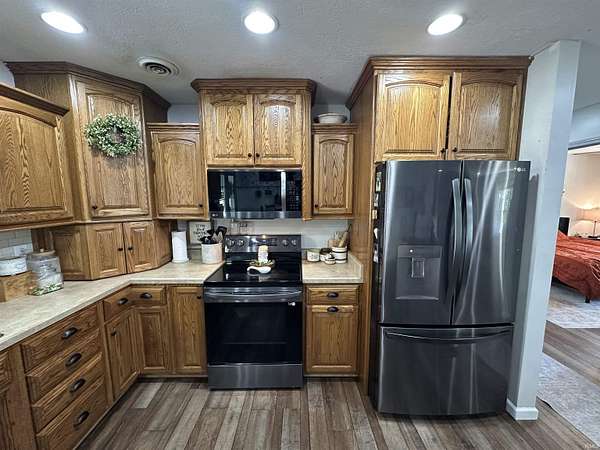 - Cable Ready, Ceiling Fan(s), Countertops-Laminate, Custom Cabinetry, Deck Open, Detector-Smoke, Dishwasher, Disposal, Dryer Hook Up Electric, Eat-In Kitchen, Home Warranty Included, Kitchen Exhaust Hood, Kitchen Island, Main Floor Laundry, Main Level Bedroom Suite, Patio Covered, RV Parking, Range/Oven Hook Up Elec, Refrigerator, Stand Up Shower, Tub/Shower Combination, Washer Hook-Up, Water Heater Electric, Window Treatment-Blinds, Window Treatments