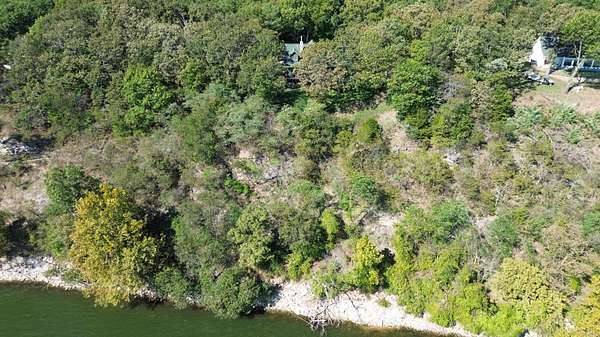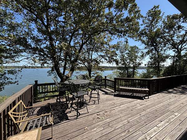 East from downtown Grove to Hwy 10 North across Cowskin bridge to E 225 Rd, follow west 2.7 miles, then Y left on 630 Rd go 1.3 miles to drive up hill to home on water.