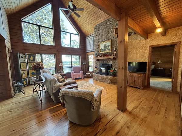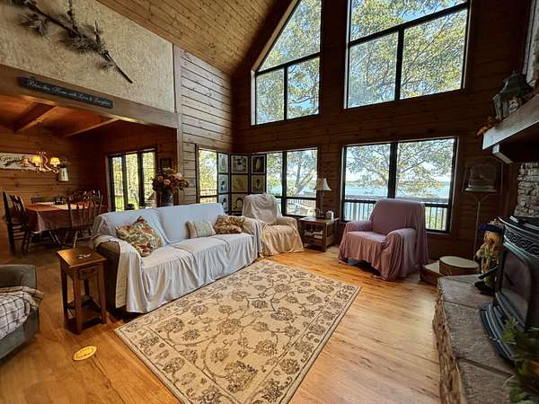 Est $3,197/moCHARMING LAKEFRONT LOG HOME offering beautiful views of Grand Lake and a warm, inviting atmosphere throughout. This 2,083sq ft home features tall ceilings, 3 bedrooms, 2.5 bathrooms, plus an office, and loft. Outside there's a large back porch ideal for relaxing or entertaining, and gather around the fire pit for cozy evenings by the lake. A detached 2-car garage with an art studio or loft above adds unique flexibility and room.