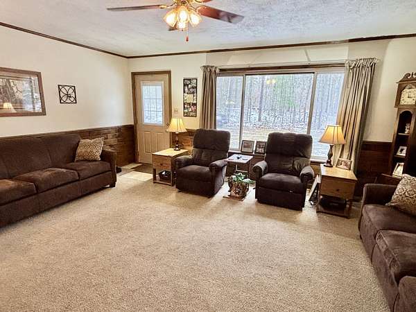 LEWISTON Home in the woods - Well cared-for, comfortable ranch on a private 10 acres. Lots of space in this one owner home with 3 bedrooms, 2 full baths, a full basement, attached 2 car garage with workshop, and a huge 30x40 pole barn which also has a full length 18x40 lean-to. Large deck on the back for entertaining or watching wildlife. Gas and wood heating, appliances to stay. Great location for a year-round home or getaway, don't miss this one!