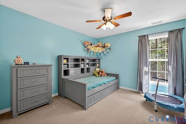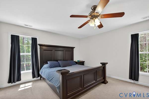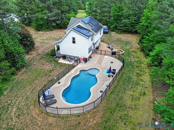 COME VISIT THIS BEAUTIFUL 4 BDRM 2.5 BATH HOME located in the Walnut Creek Subdivision in Powhatan County. The first level of this home features a foyer, spacious living room w/ hardwood floors, Eat-in kitchen w/plenty of wood cabinetry, laminate C/TOPs & island, SS APPLs, pantry w/ custom wood shelving, laundry room w/ shelving & cabinet storage, 1/2 bath & access to the attached 2 car garage complete the 1st level of home. Head upstairs to find a PRIM BR w/ carpet & C/FAN, ATT BA w/tub/shower combo, single vanity & WIC. Three additional BRs w/ carpet, C/FANs & ample closet space, shared hall bath w/ tub/shower combo, single vanity, linen closet & pull down attic storage complete the 2nd level of the home. This home boasts, beautiful HDWD floors throughout 1st floor w/ carpet on the 2nd floor, 2 NEW HVAC units 2025, outdoor entertainment space w/ stone patio & enclosed inground pool w/ all maintenance controlled on an app at your finger tip. The neighborhood has a private lake for swimming, fishing, kayaking and paddle boarding. This home is a MUST SEE!! SCHEDULE YOUR TOUR TODAY!