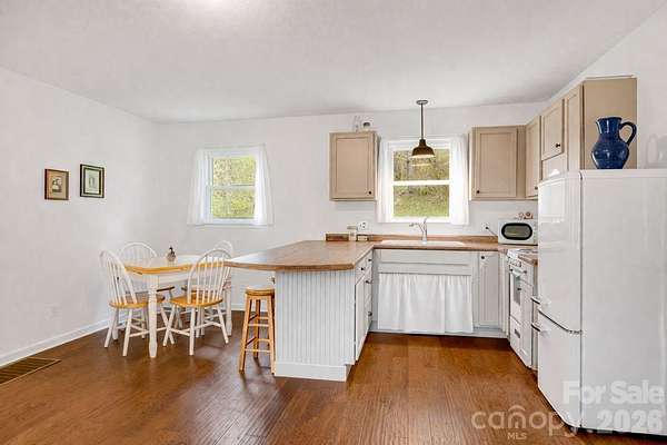 Set in the beautiful Jacks Creek community of Burnsville, this 18-acre farmstead with two homes, offers far more than a home, it offers a way of life. Framed by mountain views and anchored by a bold creek, spring fed pond, pasture, gardens, apple trees, and room to truly breathe, this property invites you to slow down, create, gather, and live more intentionally. The main home is designed for comfortable one level living with 3 bedrooms, 2 baths, and inviting spaces that connect beautifully to the land around it. The chef's kitchen is both functional and welcoming, while the dedicated office with fiber optic internet overlooks the creek and fields, creating an inspiring place to work, write, plan, or simply pause. Outdoor living is woven into daily life here, with a covered deck, screened in porch, stone patio with arbor draped in grapevines, and a private sundeck with jacuzzi just off the primary suite. A separate 1 bedroom, 1 bath guest house with full kitchen adds flexibility for guests, multi generational living, rental income, or creative use. In years past, this cottage served as a weaving studio, while the large barn was home to a woodworker and welcomed visitors during the local Toe River Arts Studio Tour. That creative spirit still lingers. Whether you envision an artist retreat, workshop, maker's compound, teaching space, event venue, hobby farm, or homestead, the setting is ready for your next chapter. The multi-purpose barn offers generous open space for gatherings, projects, storage, or farming use, with four stalls and additional storage rooms below. The grounds tell their own story, vegetable gardens, apple trees, herb and berry plantings, open pasture, and fertile farmland that has supported a life close to the land. The wooded acreage is home to wildlife and invites quiet hikes. Practical features support the dream, with solar panels for sustainable living and reduced energy costs, and a whole house generator for peace of mind. Located just minutes from Downtown Burnsville and only 45 miles from Asheville, 53 miles to Asheville Regional Airport and Tri-Cities Airport is 56 miles away. This is not just a mountain property. It is a place with history, purpose, beauty, and room to build a meaningful life. Copy & Paste this Link to view the property tour.
