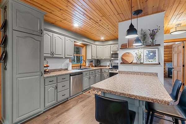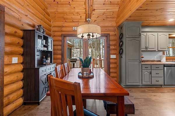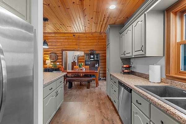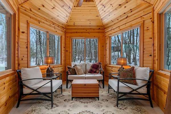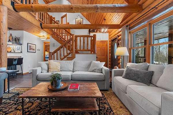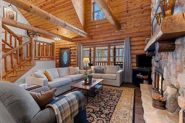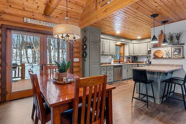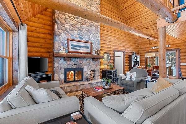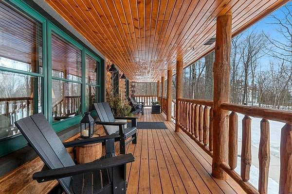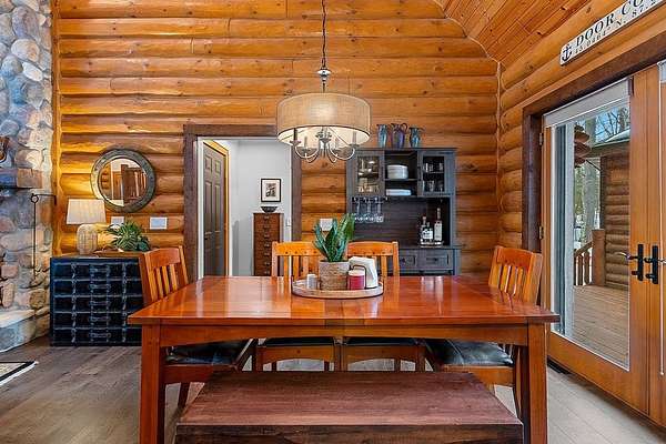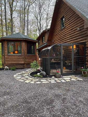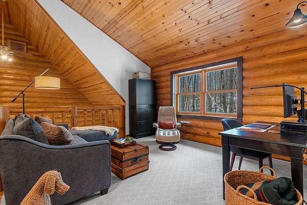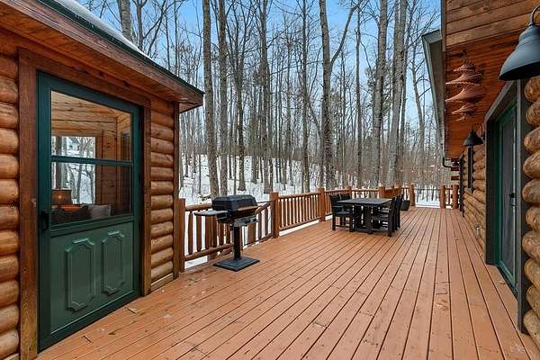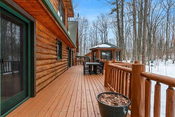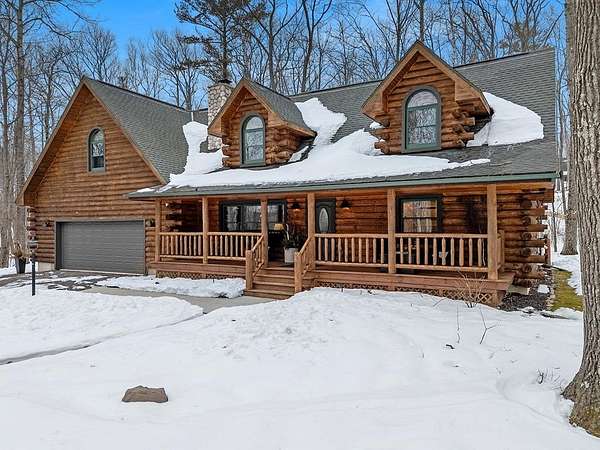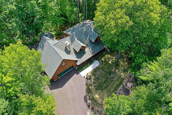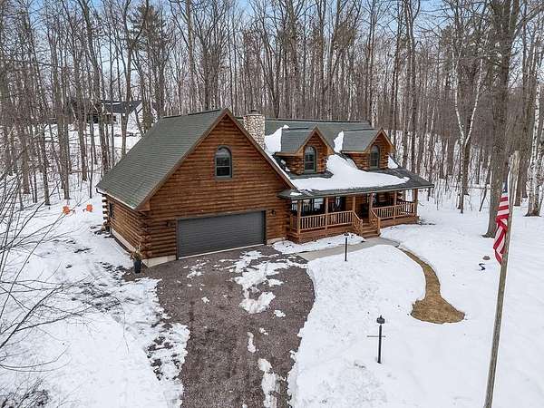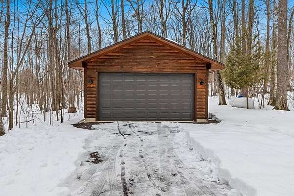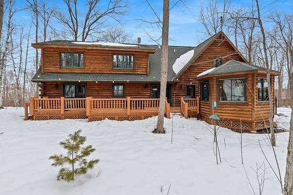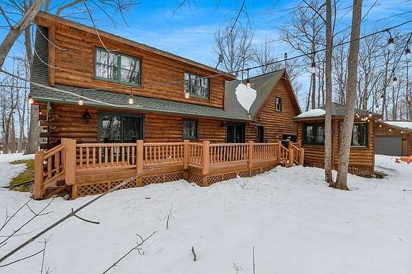 Est $4,142/moTucked away in a private, wooded setting, this custom log home—featuring many updates—offers the perfect blend of Northwoods character and modern comfort. Warm wood interiors, expansive living spaces, and large windows create an inviting retreat. Enjoy seasonal water views from the welcoming front porch, where you can see and hear the water throughout the summer, or entertain on the expansive deck. A heated outbuilding provides space for boats, kayaks, and more. Finished space above the garage includes a bath, kitchenette, and private entrance—ideal for guests or extended stays. Whether a full-time residence, seasonal getaway, or investment-minded purchase, this property offers exceptional flexibility.