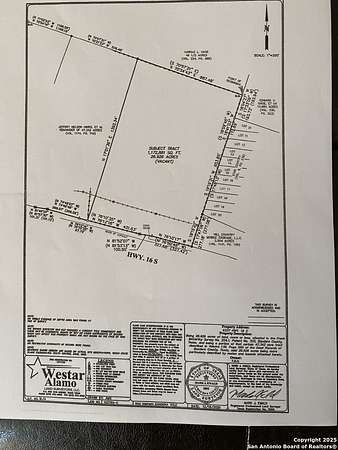 Est $9,906/mo26.926 ACRES COMMERCIAL POTENTIAL HWY 16 FRONTAGE HIGH TRAFFIC THREE PHASE ELECTRICAL AVAILABLE MOSTLY CLEARED FLAT LAND THREE SIDES FENCED WITH 16'ENTRY GATE LOTS OF POTENTIAL CURRENTLY AG EXEMPT ADDRESS 6337 HWY 16 S PIPE CREEK TX BANDERA COUNTY