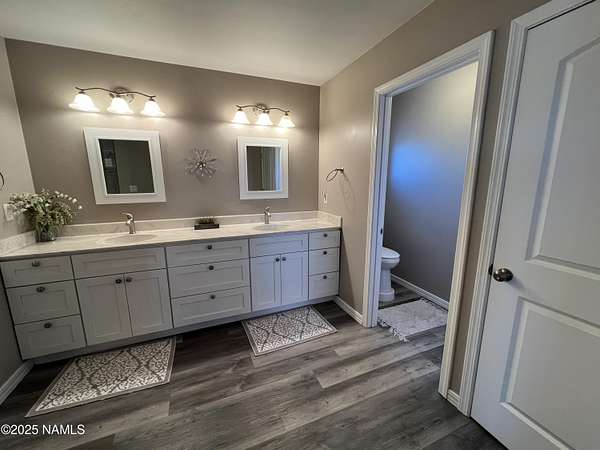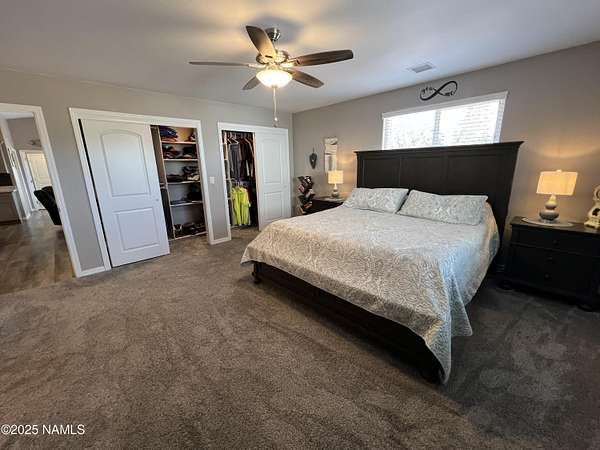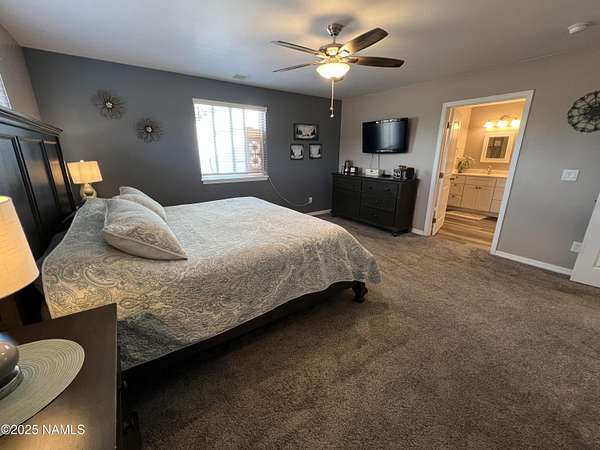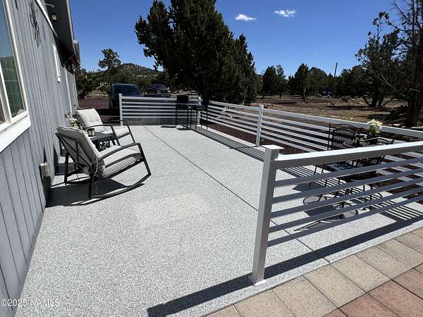 IMMACULATE and like brand new, custom home on 2.5 acres here in east area of Doney Park. 2 master suites, large living area/great room for entertaining, loads of kitchen cabinet space and quartz countertops. Primary bedroom is HUGE with spacious walk in closets, above average tiled shower, gorgeous vanity and mirrors with separate toilet room for privacy. 2nd master suite is perfect for guests with sitting area, shower and private toilet room too. Oversized 3 car garage with ample storage space. Very efficient central heat & AC for comfort year round! Across from the Coconino Natl Forest on a dead end street, the privacy, peace & quiet are exactly what you have been looking for. Side yard and front covered porch have been upgraded with special coating to have these last forever! Amazing outdoor space to take in all of the wonders of Northern Arizona! Fire pit, covered front porch, side patio. Heavily treed with views of Mt Elden and the San Francisco Peaks. Walk out your front door and take advantage of the millions of acres of Coconino National Forest. Horses welcomed here as well as other livestock and animals. You will surely live your best life here at 6339 N Bluefield Road!