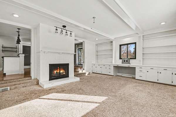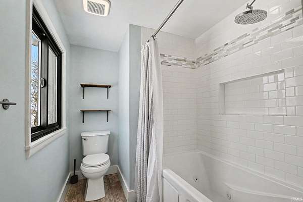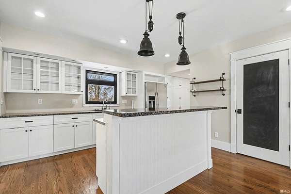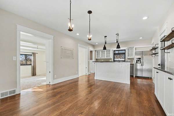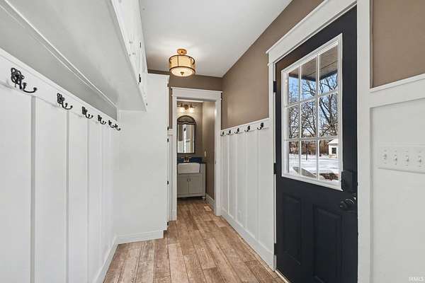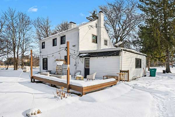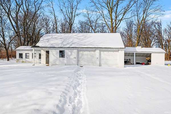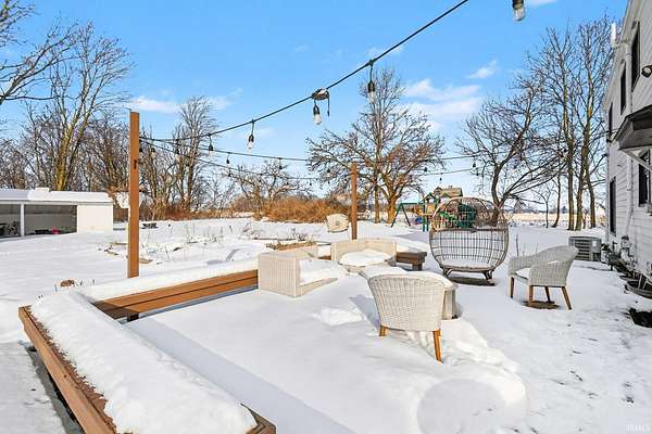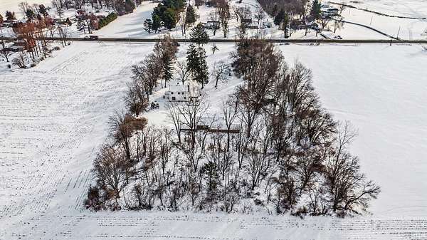 This charming 1.5 story home delivers all the farmhouse vibes and sits set back from the road. A circular driveway welcomes you in, and the home is positioned on four acres with an outbuilding and an oversized garage/outbuilding just under 1,500 square feet. The home has been tastefully updated and offers an open concept kitchen and dining room. This area features bar seating at the island, along with a cozy coffee bar complete with shelving! The main level includes a comfortable living room with a fireplace, with a flexible bonus area just off this space that works well as a playroom, home office, or reading nook. A step-down family room offers a second living area, complete with built-ins and another fireplace. Rounding out the main floor is a spacious mudroom with built in hooks, a half bath, and even main level laundry! Upstairs, you'll find three bedrooms, including a spacious primary suite with an ensuite bathroom featuring a double-sink vanity. An additional full bathroom offers a jetted tub and a convenient laundry chute. The lower level includes a fireplace, sauna, and space ready to be finished into additional living area!