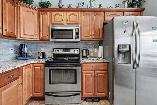 - Dishwasher, Disposal, Dryer, Electric Range, Microwave, Refrigerator, Stainless Steel Appliance(s)