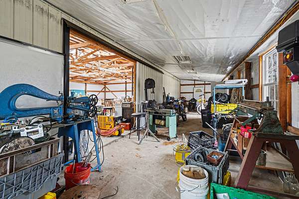 One of the property’s highlights is the massive 40x50-ft detached workshop with 9-ft ceilings—a dream space for mechanics, machinists, or hobbyists. Complete with water, electricity, and a 13-ft lean-to, it’s as functional as it is flexible. A spacious 4-car garage adds even more room for storage and projects.