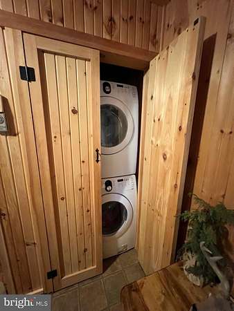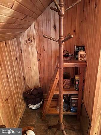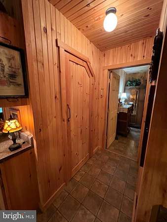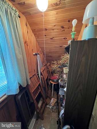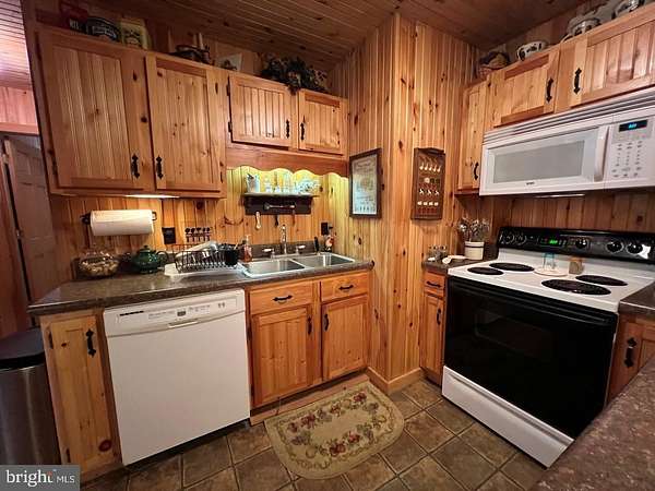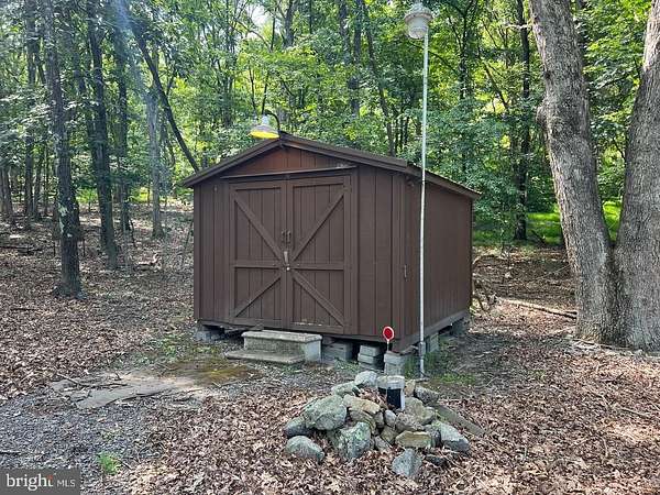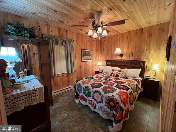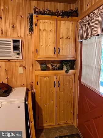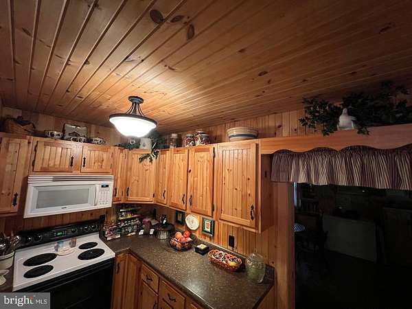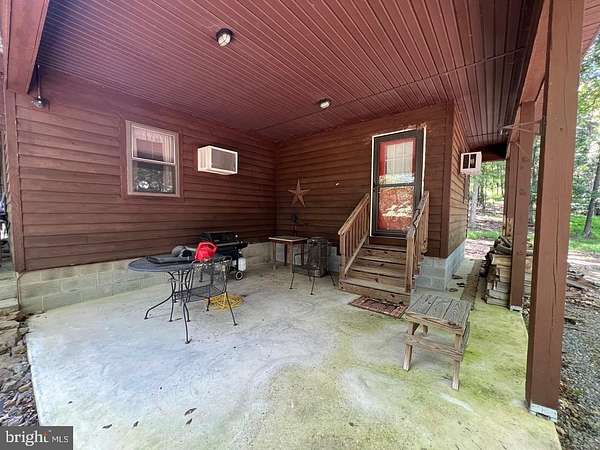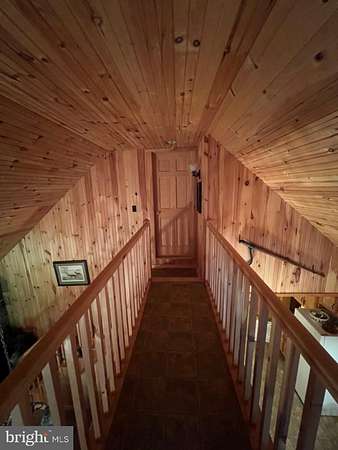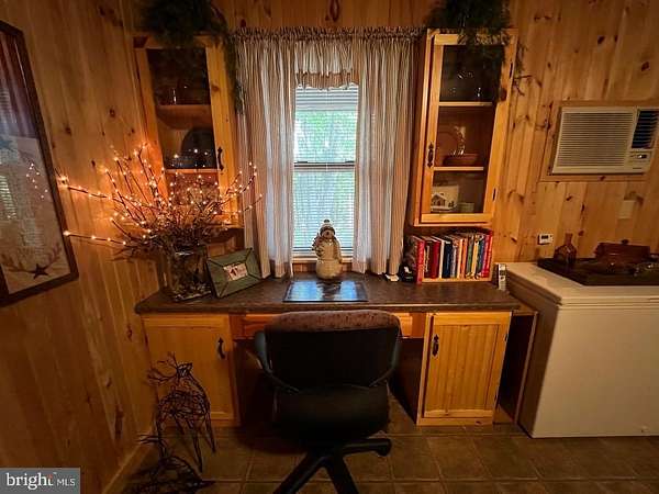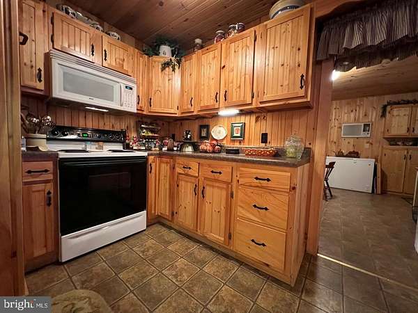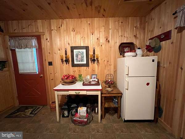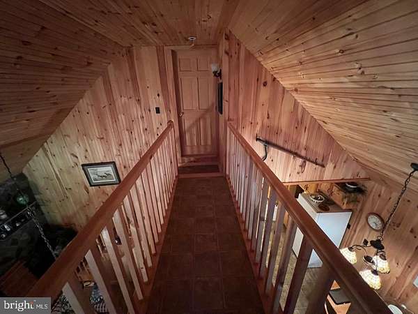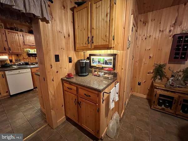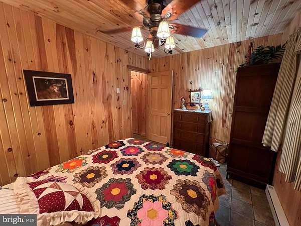 Escape to your private retreat on 11.43 acres across three lots, nestled in a gated community with sensible covenants. This charming 1995 cedar-sided cabin, centrally located on the property, offers 2 bedrooms, 1 bath, and a cozy open floor plan with wood walls and ceilings throughout. The main level features a bright living room, kitchen with all appliances conveying, and a dining area flowing seamlessly together. A versatile flex room off the kitchen includes stacked laundry in a wood-faced closet, pull-down ironing board, built-in office desk, coffee bar, and cabinet storage-perfect as a formal dining room or workspace. Stay warm with electric baseboard heat and a freestanding wood-burning stove accented by stunning stone, creating a fireplace-like ambiance. Vinyl floors, a main-level bedroom with ceiling fan, and a bathroom with walk-in shower (glass door and seat) plus electric space heater add comfort. Upstairs, a second bedroom with wood walls, balcony-style hallway, walk-in storage closet, and attic cubby provide ample space. Enjoy a concrete-covered front porch with stone entry steps, a side patio, and a pass-through 1-car attached garage. A storage shed and most furnishings convey. This well-maintained vacation home reflects true pride of ownership. The gated community offers 19 acres of shared land along the South Branch of the Potomac River for hiking and steep river access. Located 2.5 miles down county-maintained gravel roads, this secluded gem with well water, septic, and wall A/C units awaits your relaxation.