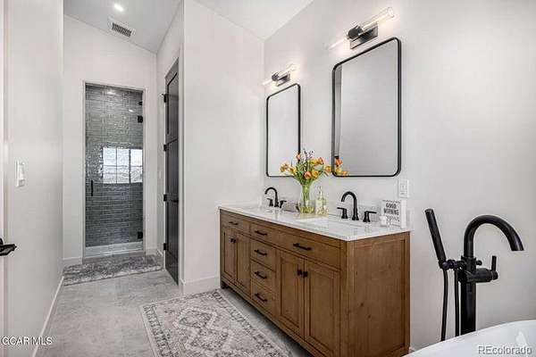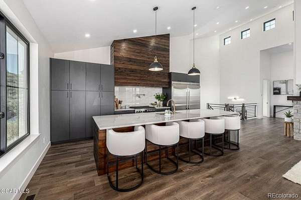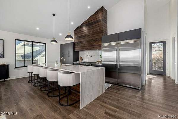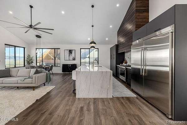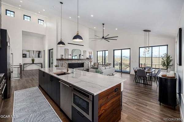 Wow! This extraordinary 7-bedroom retreat in Granby Ranch is truly a dream come true! Escape the city and savor crisp mountain air in this contemporary masterpiece, where spectacular vistas and impeccable craftsmanship take center stage. Step through the custom entry door to discover breathtaking design defined by clean lines, high-end finishes, and a modern, airy ambiance. The spacious living room welcomes you with an entertainer's wet bar, while upstairs a stunning great room impresses with soaring ceilings and an in-wall gas fireplace. Thoughtful details shine throughout—recessed lighting, LVP flooring, stylish fixtures, sleek ceiling fans, and sweeping views of the snow-capped mountains from nearly every window. A showpiece worthy of a magazine, the kitchen radiates sophistication, with custom black cabinetry, stained shiplap accents, marble countertops & backsplash, stainless steel appliances, and a large waterfall island. The owner's suite offers a luxurious escape, featuring a spa-inspired ensuite with a dual vanity, freestanding soaking tub, and beautifully tiled shower. A second primary suite elevates the experience further with its own lavish ensuite adorned with striking gold fixtures. Even the oversized garage impresses with custom lighting & pristine epoxy flooring. Enjoy serene moments on the cozy balcony or fire up the grill on the back patio. This one-of-a-kind gem truly has it all. Don't miss the chance to make it yours!
