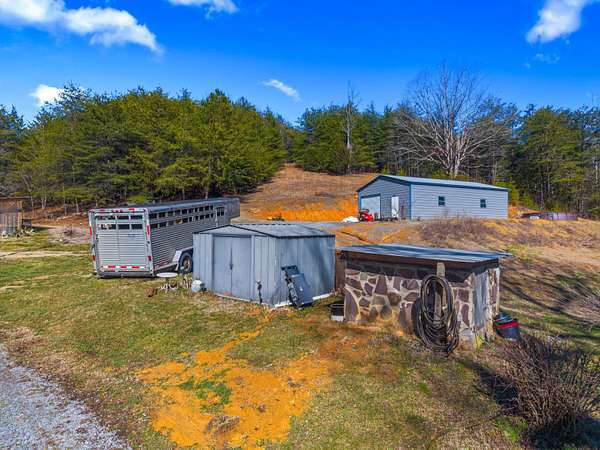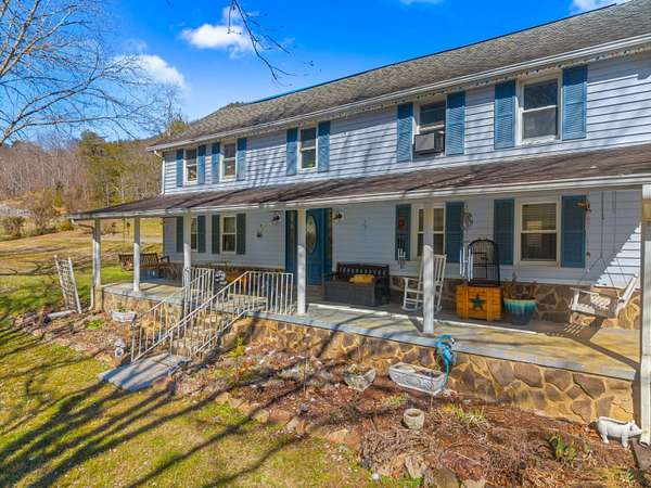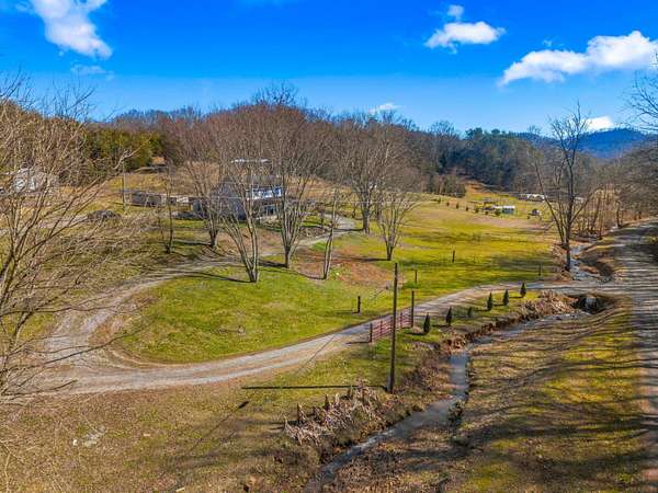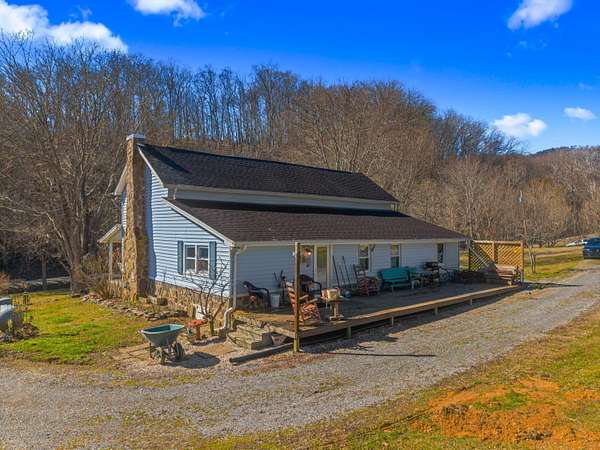 Historic farmhouse from 1875 on approximately 28 acres in the rolling hills of Hawkins County, just outside of Rogersville. Inside you will find 2 bedrooms on the lower level and 2 on the upper level. Outside you will discover a blend of open land and natural water features, including a creek that runs along the road frontage and an additional spring-fed stream that supplies several small ponds. Improvements include a metal garage building constructed in 2018 with capacity for two vehicles, as well as a greenhouse suited for gardening, homesteading, or hobby use. The land features partial fencing and offers multiple potential uses including residential, agricultural, or recreational purposes. Property is located outside the city limits, resulting in no city taxes, and is eligible for Greenbelt classification (subject to buyer qualification). Fiber internet service is available, providing modern connectivity while maintaining a rural setting. There is the start of a small cabin at the top of the property as well. All information deemed reliable but not guaranteed.