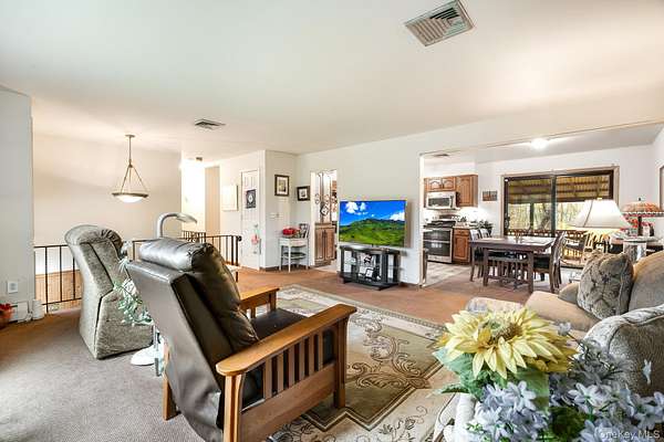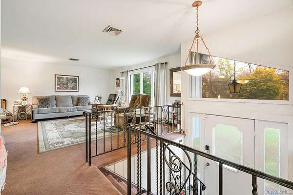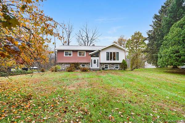 Charming Raised Ranch on 3.8 Acres with Stream & Great Potential! Welcome to this spacious 3-bedroom, 1 full and 2 half bath raised ranch, perfectly situated on 3.8 acres featuring a peaceful stream and plenty of room to roam. This well-built home offers great bones and endless potential-just bring your ideas and make it truly shine! The main level features a bright and inviting living room, a dining area that opens to a covered deck, and a functional kitchen with ample cabinet space. The primary bedroom includes its own en suite half bath, while two additional bedrooms share a full hall bath. Downstairs, you'll find a finished basement complete with a half bath and fireplace ideal for a family room, home office, or guest space. The attached 2-car garage provides convenience and extra storage. Outside, enjoy the tranquility of your private acreage-perfect for gardening, outdoor activities, or simply relaxing by the stream. Centrally located and close to schools, shopping, trains, and the local bus system, this home offers both privacy and accessibility. With a little TLC, this property can become the home you've been dreaming of-a peaceful retreat with easy access to everything you need!