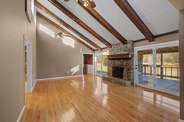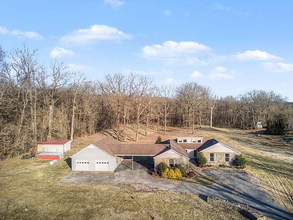 Enjoy peaceful North Columbia country living just minutes from town on this beautiful 5-acre property--perfect for your family, your animals, and your lifestyle. Nestled on the land is a charming stone home offering 3 bedrooms and 2 baths, full of warmth and character. The huge family room features soaring ceilings, exposed wood beams, a cozy stone fireplace, and gorgeous hardwood floors, all opening onto a large deck that overlooks your fully fenced back acreage--ideal for relaxing or entertaining with a view. The kitchen is a dream with cabinets galore, a bright and sunny breakfast room, and seamless flow into the formal dining room. A massive laundry room provides tons of storage and everyday convenience. Spacious rooms continue throughout, including a standout man cave with a wet bar and durable concrete floors--perfect for entertaining, hobbies, or game nights. Outside, you'll love the 30x40 garage, plus a covered carport that connects the home to the garage for easy, weather-protected access. Mature blueberry bushes add a sweet touch of charm right in the front beds, rounding out this incredible property that blends country serenity with city convenience.