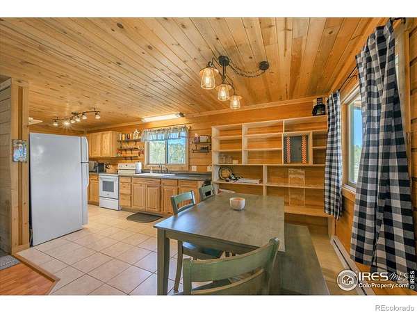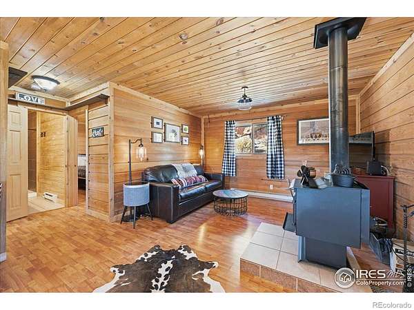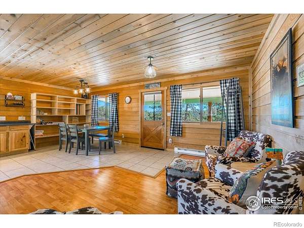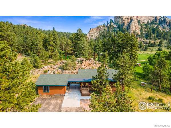 Rare Red Feather Ranch property with a beautiful home/cabin, detached flex space, huge shop, and proximity to Roosevelt National Forest! Experience true mountain living on 8.59 pristine acres featuring seasonal water and a small pond on property, with dramatic rock outcroppings nearby. This functional one-story ranch cabin offers an inviting open-concept living area, 2 bedrooms with built-in closets, and a tastefully updated bathroom. Enjoy the outdoors from the covered porch, which leads via a breezeway to a 520 sq. ft. flex space with electricity and a wood burning stove. The large 1,200 sq. ft. powered steel shop (built in 2017) with concrete floors and a large bay door offers flexible use for storage, projects and for your high country adventure equipment. With direct access to Roosevelt National Forest just steps away, this lush meadow property is the ultimate mountain escape or full-time residence.
