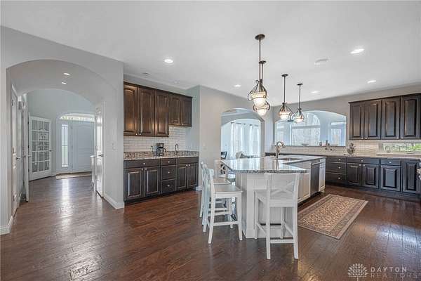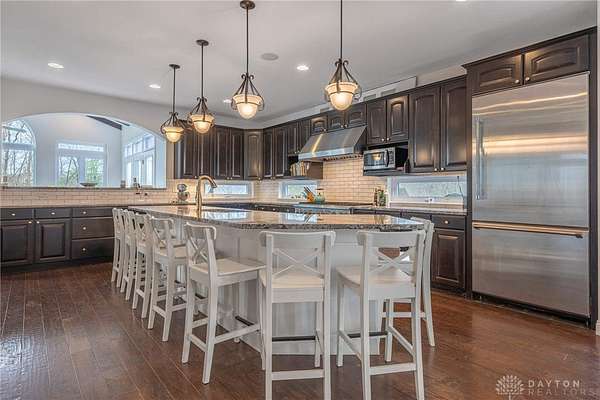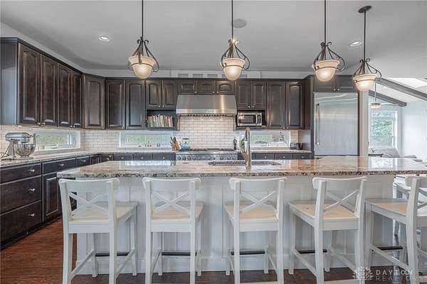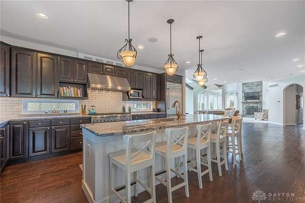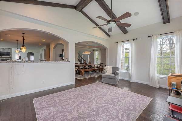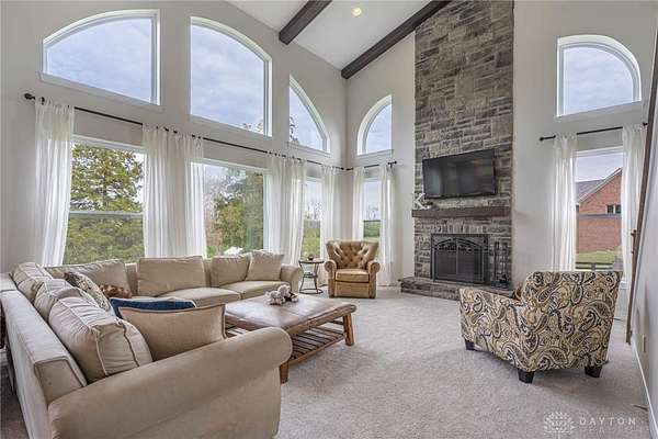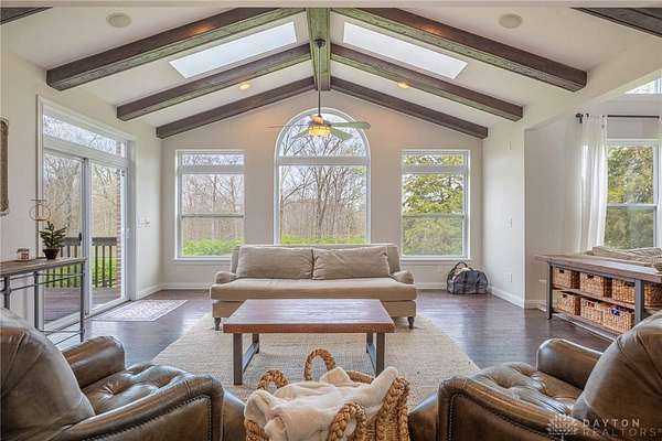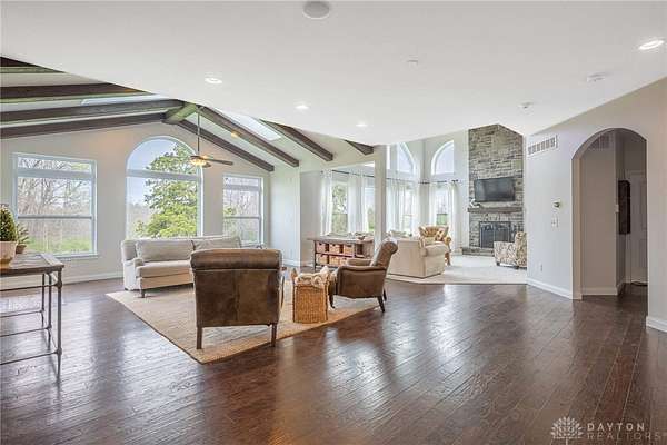 Beautiful two-story home with a walkout basement, offering over 5,700 square feet of living space on 2.2 private acres. With an adjacent vacant lot adding to the privacy, this property combines space, functionality, and high-end finishes, all while providing the rare benefit of city water, sewer, gas, and high-speed internet. Inside, you’ll find expansive living areas filled with natural light, highlighted by soaring 20-foot ceilings in the family room and floor-to-ceiling windows. The main level includes a sunroom, along with scraped wood flooring, custom wood beam ceilings, skylights, and a wood-burning fireplace. The kitchen is designed for both everyday living and entertaining, featuring high-end Thermador appliances, a 6-burner gas cooktop with double oven, granite countertops, and a walk-in pantry. The main floor also offers a dedicated office with built-ins and a gas fireplace, along with additional flexible living spaces. The home offers five bedrooms and 4 1/2 bathrooms, including a spacious primary suite with a steam shower, jacuzzi tub, walk-in closet, and private second laundry. Additional flex spaces provide endless possibilities for a home gym, hobby room, or potential sixth bedroom. The walkout basement is built for entertaining with 10’ ceilings, a full bar, separate audio system, and ample space for gatherings, along with additional storage. Step outside to a living space that continues the home’s appeal, with a deck accessible from the living room overlooking the 2+ acre property and the neighboring vacant lot for added privacy. A covered porch, fenced garden, fruit trees, and a 10x20 shed create a setting that blends relaxation, functionality, and true indoor-outdoor living. Additional highlights include new carpet, 400 AMP electrical service, tankless water heater, dual furnaces, whole-house audio, security system, and underground dog fence—making this home a perfect blend of luxury, comfort, and practicality. Call me for a private showing.