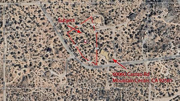 Immediate neighbor's address: 60060 Carrizo Rd, Mountain Center, CA 92561; NW corner: 33.611694, -116.434613