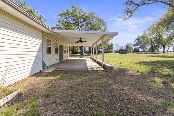Your next chapter starts here! With over 2 peaceful acres, this inviting 3 bed, 2 bath home gives you all the space you need to live, gather, and celebrate the moments that matter. Inside, the open-concept layout offers two comfortable living areas - perfect for movie nights, game days, or hosting the whole crew. The natural flow makes everyday living easy and enjoyable. Outside is where this property truly shines: a large shop for projects, additional sheds for storage, a storm shelter for peace of mind, and a spacious patio designed for slow mornings and sunset dinners. A well-kept home with room to breathe and space to dream. Seller is a licensed real estate agent.