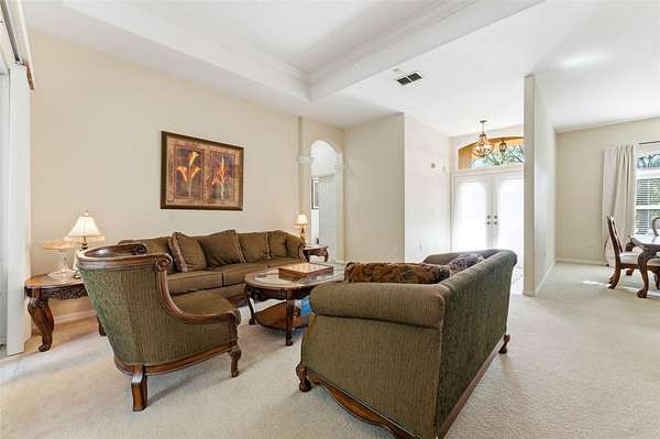 Situated on nearly 2 acres with no HOA or CDD, this 4-bedroom, 3-bath, 3-car garage home offers privacy, space, and flexibility in Wesley Chapel. Built in 2002, the home features a split, open floor plan with high ceilings, arched architectural details, and multiple living and dining areas filled with natural light.