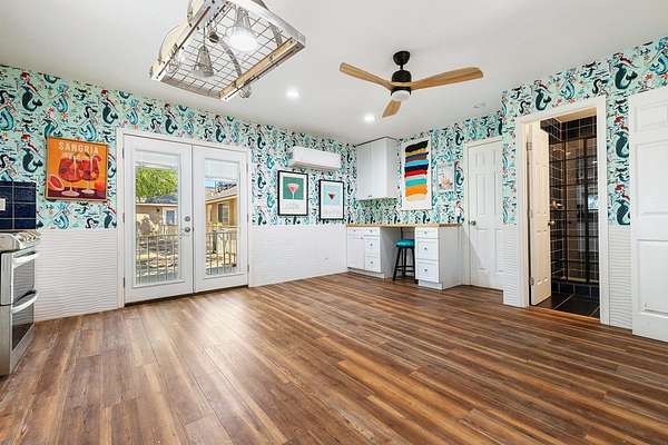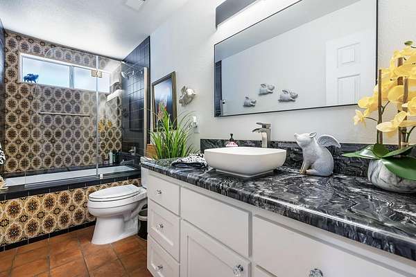 BACK ON MARKET through no fault of Sellers. Now you have an opportunity to score this Great Clovis horse property with view of the foothills. Entering this spacious home, you will immediately see REAL hardwood floors throughout the main living areas. Whole house fan. Kitchen has been updated with granite counter tops, deep country sink, commercial 6 burner gas stove, stainless steel dishwasher and sub zero stainless refrigerator. Large game room for entertaining! This 4 bedroom 4 full bath home has a mother-in-law set-up attached over the garage with bedroom, full bath, kitchen, washer/dryer and French doors to a private patio. This area has recently been transformed into an ADU with tenants. Outside is where the fun begins with a beautiful newly enclosed patio that is now a Pool room complete with dressing area, kitchen, washer/dryer and full bath. Stamped concrete walkways to the fenced pool with waterfall and horse area. The COMPLETE horse set-up is outstanding. It includes 2 tack rooms, round pen, stalls, arena, wash station and 5 ft pipe rail fence with climb wire. There is also a Metal workshop with 2 roll up doors.Detached structures include dog wash/grooming shed, workshop, shed.