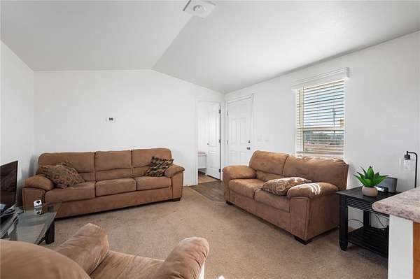 - Dining Area, Laminate Counters, Laminate Countertop, Open Floorplan, Primary Suite, Separate Shower, Shower Only, Vaulted Ceilings