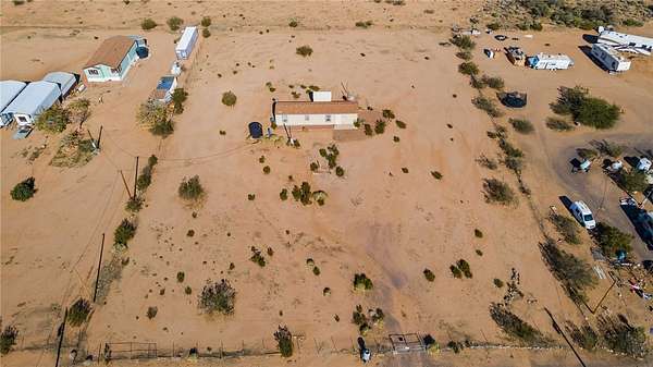 Looking for new owners! This charming 2-bedroom, 2-bath ground-set singlewide manufactured home offers 728 sq. ft. of comfortable living space on a spacious 1.59-acre lot. The open-concept, split floor plan features vaulted ceilings that create a bright and airy feel. The kitchen includes casual dining space, along with ample cabinet and counter space, making it both functional and inviting. The living room is carpeted for comfort, while laminate flooring runs throughout the rest of the home. A wide hallway with washer and dryer hookups adds everyday convenience. Enjoy easy access, beautiful views, and the serenity of country living where peace and quiet prevail. This is a water haul property, ideal for those seeking privacy and a relaxed lifestyle. Come and enjoy our beautiful Arizona desert, sunrises, sunsets and starry night skies. Don't wait call a Realtor and schedule your showing today!