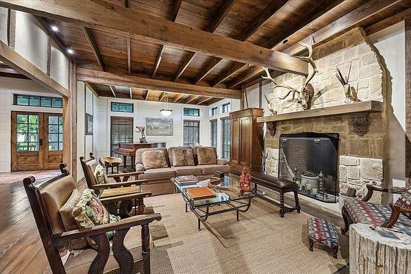 Your private oasis awaits at this premier country retreat. Discover an unparalleled blend of rustic charm and tranquility on this 188.76acre property, featuring majestic legacy live oak trees. Designed for discerning buyers, this retreat offers the ideal high-end country living experience. The custom-built main house boasts unique accents from a historic barn that was lovingly restored and incorporated into the design. It includes four bedrooms and five baths, each meticulously designed for comfort and refinement. The primary suite serves as a sanctuary with two spa-like bathrooms and stunning views. A fire pit allows for cozy evenings under the stars. The wellappointed kitchen and expansive patio are ideal for hosting unforgettable events. Excellent opportunity for equestrians with a barn equipped for training, an arena and miles of riding trails. Enjoy unmatched privacy and convenience with your own private airstrip, allowing for serene countryside living without compromising on modern amenities. This property promises an exceptional lifestyle, perfect for creating cherished memories.