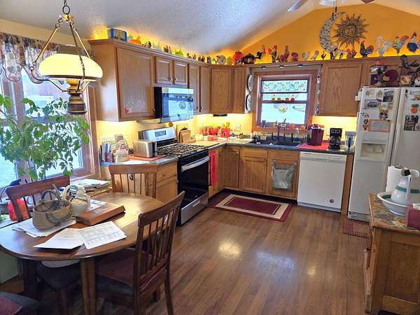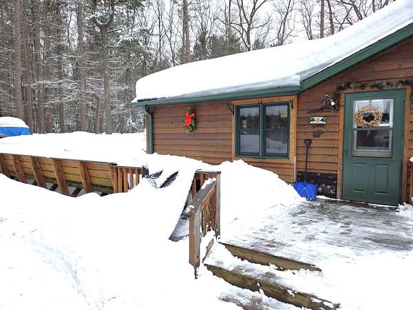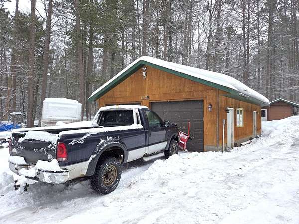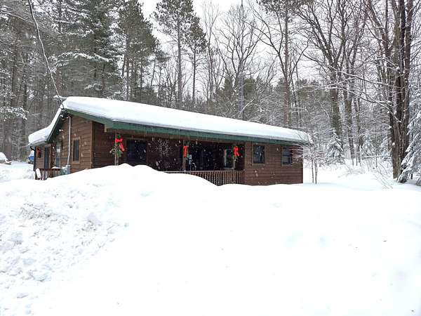 Escape to the Northwoods! This 3 bedroom, 2 bath home offers nearly 1,000 finished sq ft plus a full basement for storage or future expansion. Enjoy the outdoors from the wraparound sundeck and covered front deck, all set on 2.63 wooded acres. The detached 2-car heated garage features a workshop and bonus room-perfect for hobbies or extra space. Recent updates include a brand-new forced air furnace and Generac generator. Appliances are included for a turnkey start. Located directly on the snowmobile trail and just 5 miles west of Land O' Lakes, WI, with premier lakes and a bike trail nearby. Ideal for year-round living or a Northwoods getaway!