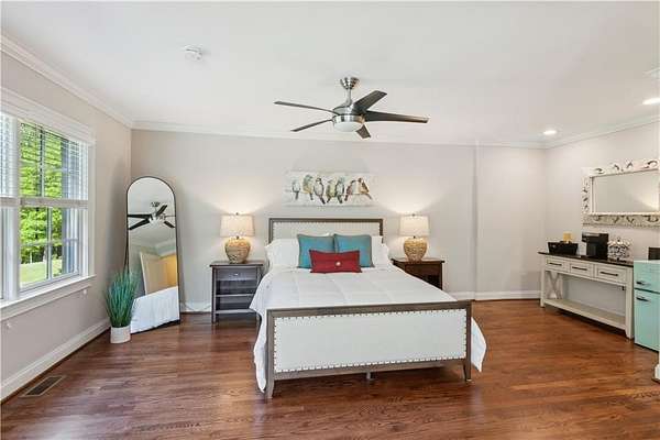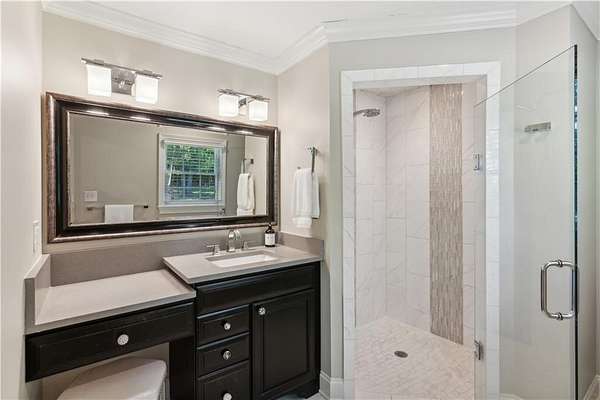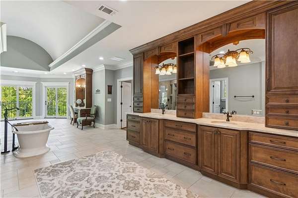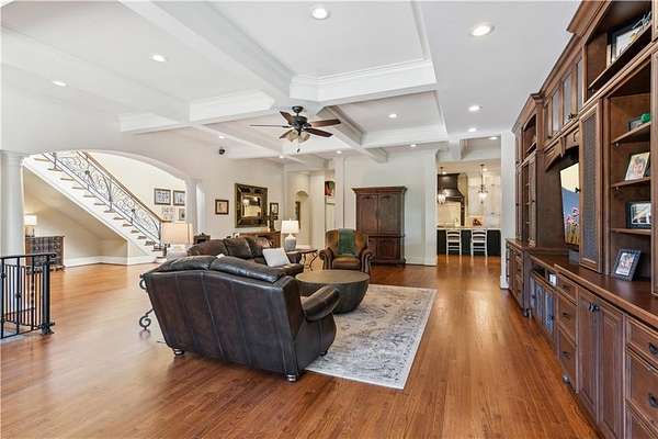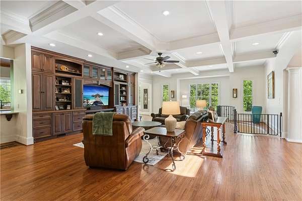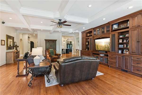 - Beamed Ceilings, Bookcases, Coffered Ceiling(s), Crown Molding, Double Vanity, Entrance Foyer 2 Story, High Speed Internet, Walk-In Closet(s)