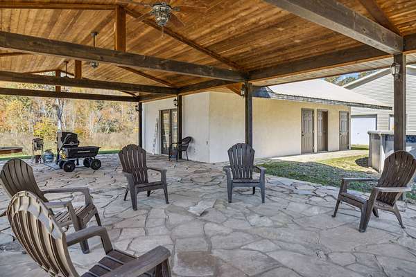 This property spans 110 acres with a creek, providing a vast private retreat. The main home features 5 spacious bedrooms and 3 full baths, offering ample room for family and guests. Along with a canning room. The estate also includes a 1,200 sq. ft. building with a full kitchen, bedroom, two bathrooms, and a convenient shower room connected to the pool area--perfect for guest lodging or entertaining. For outdoor gatherings, a large pavilion provides a comfortable, shaded space for social events or relaxation. Additionally, a detached shop offers generous room for storage, projects, or hobby needs. This property combines luxury, space, and function, making it an ideal choice for anyone looking for a versatile and expansive home setting.