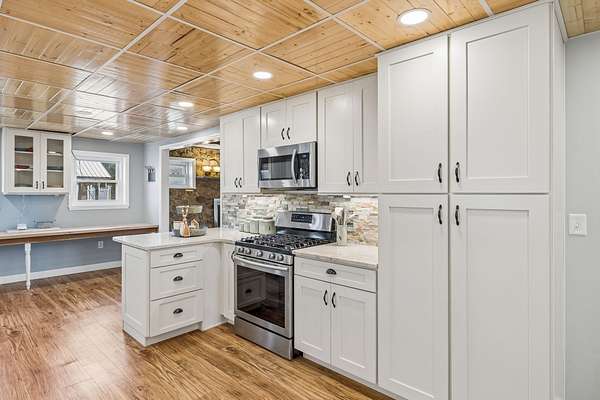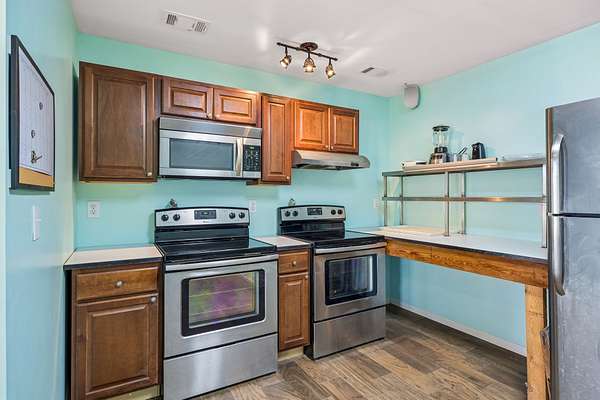 - Built-In Electric Oven, Built-In Electric Range, Dishwasher, Microwave, Stainless Steel Appliance(s)