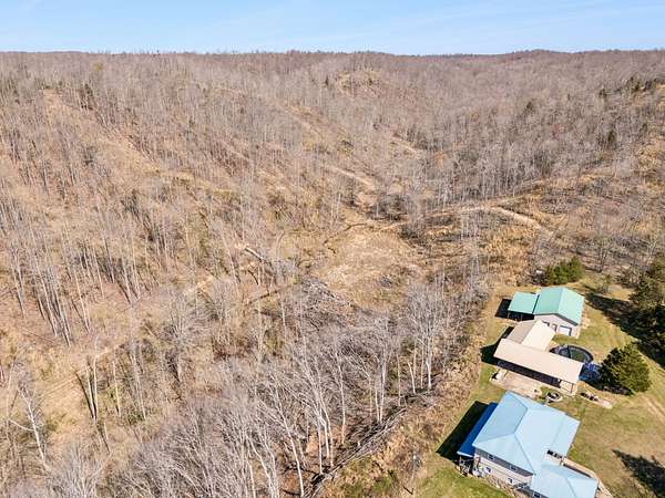 Discover a rare 112-acre private retreat featuring a serene creek, breathtaking views, and abundant wildlife, offering unmatched privacy and versatility in a peaceful, highly desirable location. The main home boasts 5 spacious bedrooms, 3 full baths, and a split floor plan designed for comfort and flow, complete with a cozy fireplace for relaxing evenings, a balcony off the master bedroom, and a deck overlooking the expansive grounds. The gourmet kitchen showcases white cabinetry, recessed lighting, and stainless steel appliances, while a dedicated canning room and attached 1-car garage add practical functionality. Expanding the possibilities, a 1,200 sq. ft. guest building features a full kitchen with two stoves, bedroom, two baths, and a convenient shower room connected to the pool area, perfect for entertaining or private accommodations. Outdoor living is elevated with a large pavilion equipped with built-in speakers, ideal for gatherings, social events, or peaceful relaxation. A detached shop provides ample space for hobbies, storage, or projects, and the three-year-old pool adds another layer of enjoyment. This property offers exceptional hunting land, potential additional build sites for a dream home, and endless opportunities for entertainment and outdoor activities. Don’t miss the chance to own a one-of-a-kind estate that combines luxury, function, and natural beauty - schedule your private showing!