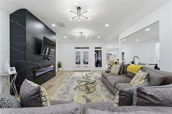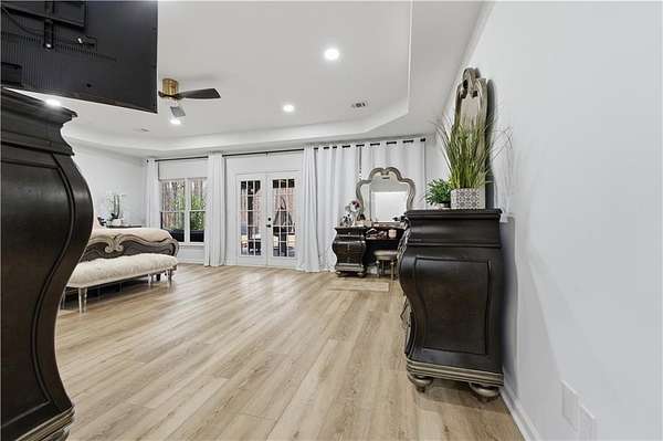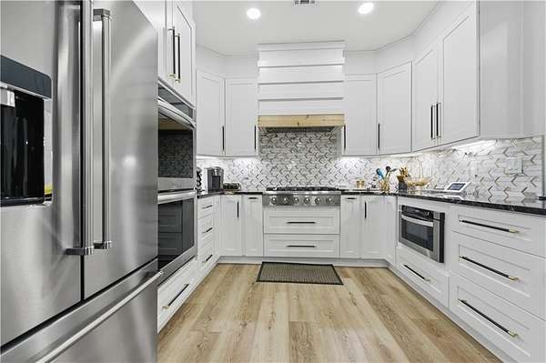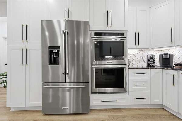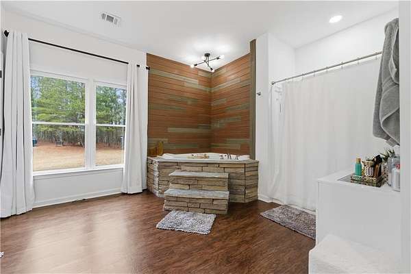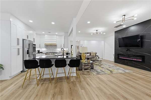 Welcome to a private, gated ranch retreat where space, comfort, and freedom come together on 5 fully fenced acres. This beautifully renovated home blends modern luxury with timeless charm, offering a lifestyle defined by privacy, elegance, and possibility. From the moment you arrive, the gated entrance sets the tone. This is more than a home. It is a sanctuary. Inside, you will find 4 spacious bedrooms and 2 full bathrooms, with the primary suite conveniently located on the main level. Two additional versatile rooms provide endless possibilities such as a home office, gym, creative studio, or additional bedrooms, allowing the home to evolve with your lifestyle. The main living areas feature updated LVP flooring and a striking modern fireplace, creating a sophisticated focal point for gathering and relaxing. The heart of the home is the brand new, fully remodeled kitchen designed to impress with exotic granite countertops, stainless steel appliances, double wall ovens, and an oversized walk in pantry measuring 18x10, perfect for both entertaining and everyday living. The spacious dining room and primary bedroom open directly to a large covered patio with stamped concrete, creating seamless indoor outdoor living ideal for slow mornings, sunset dinners, and unforgettable moments. The oversized primary suite offers space for a sitting area, forming a true retreat. The spa inspired primary bathroom includes a double vanity, large jetted tub, separate shower, an expansive walk in closet, and an adjacent laundry room thoughtfully designed for comfort and flow. Two secondary bedrooms share a Jack and Jill bathroom, while a private bedroom above the garage features its own mini split system, perfect for guests, extended family, or a private workspace. Outdoors, the property continues to deliver. Enjoy a fenced garden area with well water access, irrigation system, and chicken coop, supporting a lifestyle of sustainability and connection to the land. For those needing exceptional storage or workspace, the oversized detached garage is equipped with water, power, air compressor plumbing, and five roll up doors including two 12 foot electric doors and three 10 foot doors. An additional 8 bay open air storage area includes water and power, along with a full RV hookup featuring water, power, 30 amp service, and clean out. The home is serviced by county water, with the added benefit of well water, offering flexibility and peace of mind. Extensively renovated and meticulously maintained, this property offers far more than meets the eye. It is a place where you can slow down, breathe deeper, and truly live. A rare opportunity. This is a must see to fully appreciate.