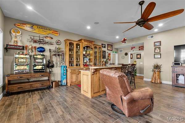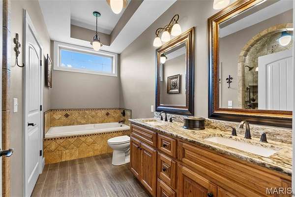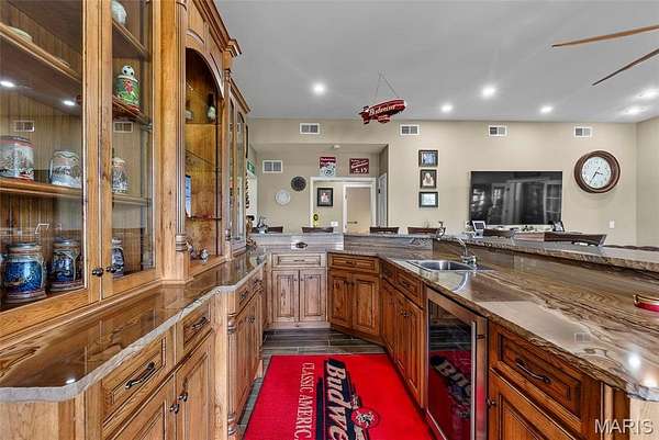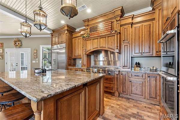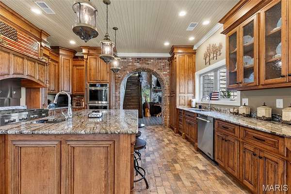 - Bar, Crown Molding, Custom Cabinetry, Double Vanity, Granite Counters, High Ceilings, High Speed Internet, In-Law Floorplan, Kitchen Island, Natural Woodwork, Open Floorplan, Pantry, Recessed Lighting, Separate Shower, Soaking Tub, Sound System, Special Millwork, Storage, Tray Ceiling(s), Vaulted Ceiling(s), Walk-In Closet(s), Wet Bar, Wired For Sound, Workshop/Hobby Area